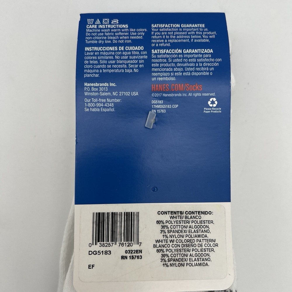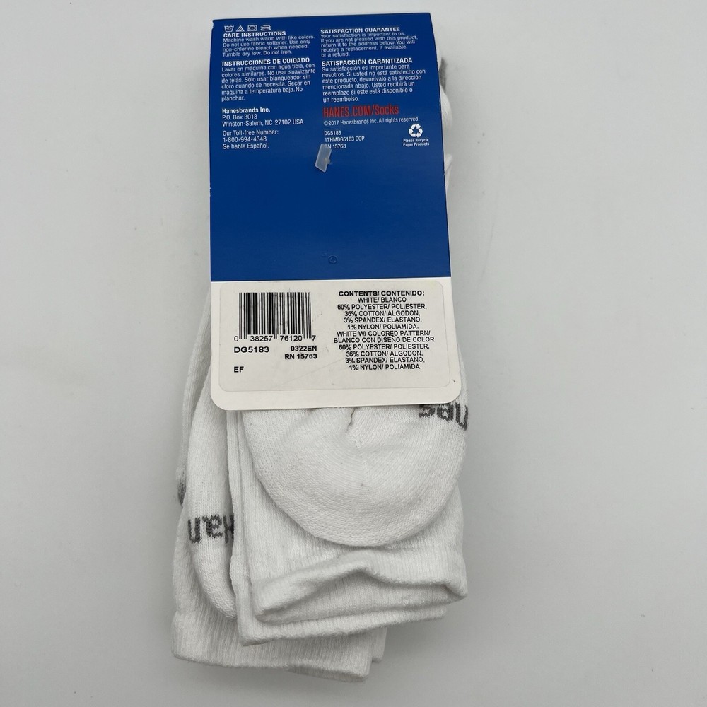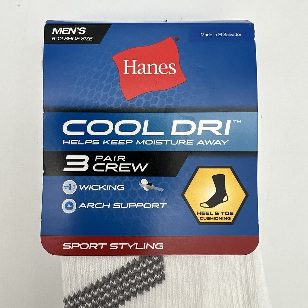 Hanes COOL DRI Crew Socks 3-Pack Moisture-Wicking Arch Support Men’s 6-12 White