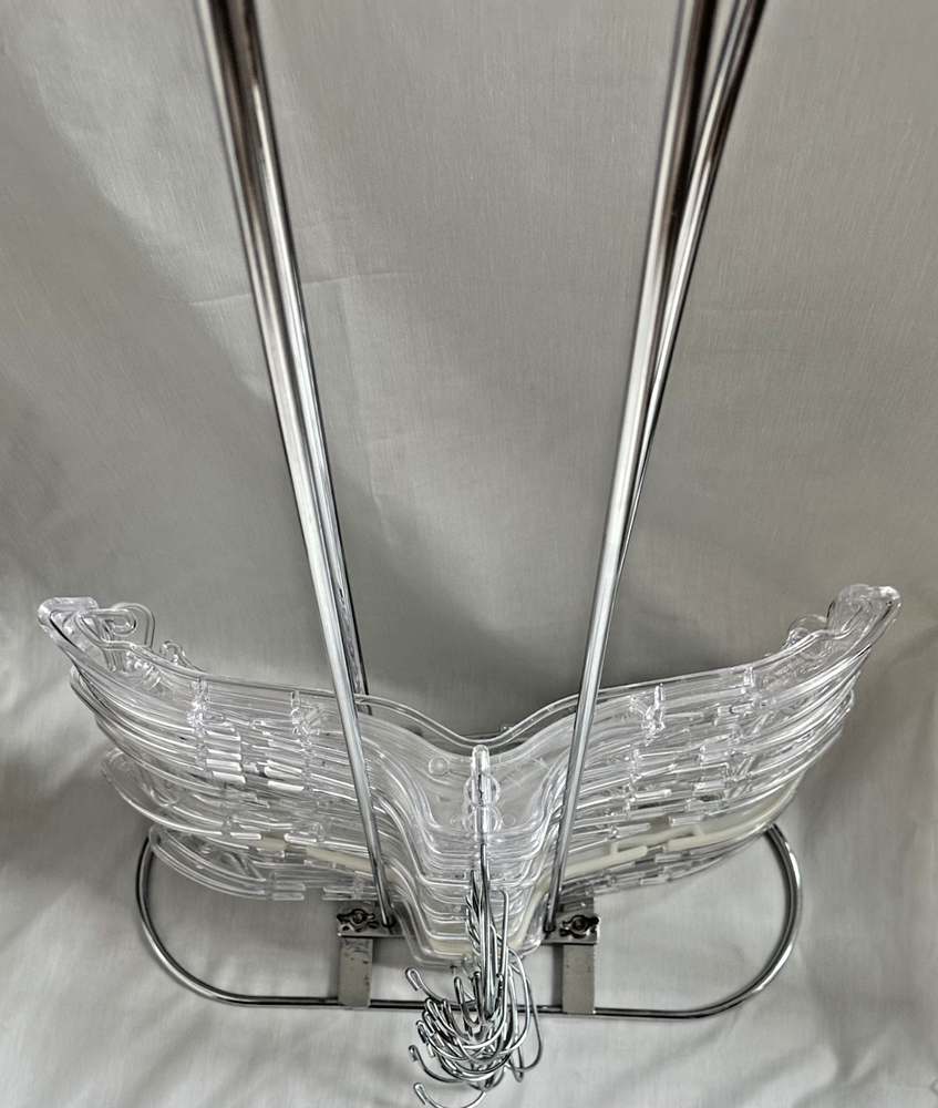 LAST ONE!!!! NOTE: Hangers from Photos are not included. Tidy up your closet or workspace with this sleek, easy-to-assemble hanger stacker. Depending on the hanger it can hold up to 100 hangers. Fits plastic, wire, or wood hangers, it keeps empty hangers organized and off the floor. ✨ Features: Tool-free assembly – hand-tighten only Holds approximately 100 plastic hangers. Freestanding design – easy to carry and move Chrome finish – sleek, professional look Perfect for home closets, laundry rooms, or retail use ♻️ I reuse clean shipping packaging to reduce waste. Thanks for supporting an independent seller! 📦 My hands-on, overly controlling shipping operation mails it out in 1-business day — and with free shipping!