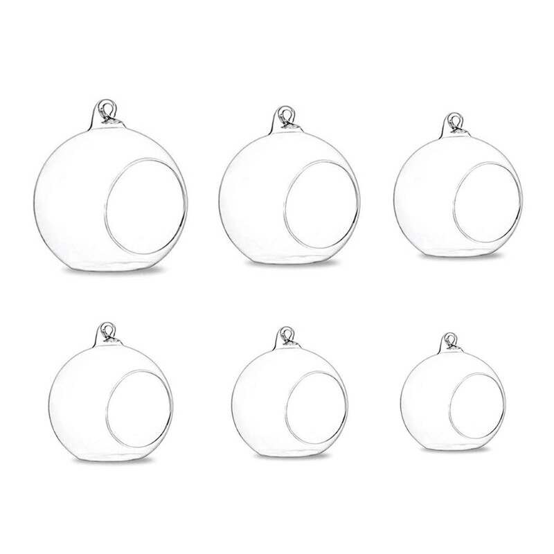 brand new and high quality Features: GLASS: This spherical hanging planter is the perfect item to accent your space and create a soothing atmosphere in your home. Perfect for DIY projects, holiday centerpieces. MINIMALIST DESIGN: Made of clear glass for full light exposure, the opening allows the terrarium to be decorated in multiple ways. Create beautiful ornaments and dress up those dull corners of your home to add a personal for touch. DECORATE YOUR HOME: These hanging spheres are perfect for both indoors and outdoors d?cor. Display your arrangements with natural greenery and make up a pleasant ambiance. Alternatively, they can also be used to hold tea light candles to complement your tabletop or bring light to any area of your house. HANGING PLANTER: Whether you are hanging these terrariums or laying them on a flat surface they're perfect to fit and display a wide range of air plants(Tillandsia) and succulent of various shapes. 2 IN 1 DESIGN: and lay-down design. There is a suspension hole design above the globe. The bottom of the glass globe is flat and can be placed flat on a table. MULTIPLE PURPOSE USE: The globes can be used not only as planting boxes! You can use them as candlestick DIY gifts, moss miniature gifts, home decoration flower stands, tealight holders, gifts and more. WIDE APPLICATION: Glass globes are very suitable for home decoration, party decoration, shopping mall decoration, wedding decoration, office desktop decoration. You can replace the filling of the globe according to your preference. Glass Vase only,other accessories demo in the picture is not included. Specification: Material: Glass Optional Size: 01, 02, 03, 04, 05, 06 01 Size: app.6cm/2.36in 02 Size: app.8cm/3.14in 03 Size: app.10cm/3.93in 04 Size: app.12cm/4.72in 05 Size: app.15cm/5.90in 06 Size: app.20cm/7.87in Color: Transparent Quantity: 1 Pc Note: No retail package. Please allow 0-1cm error due to manual measurement. pls make sure you do not mind before you bid. Due to the difference between different monitors, the picture may not reflect the actual color of the item. Thank you! Package Contents: 1 x Glass Vase