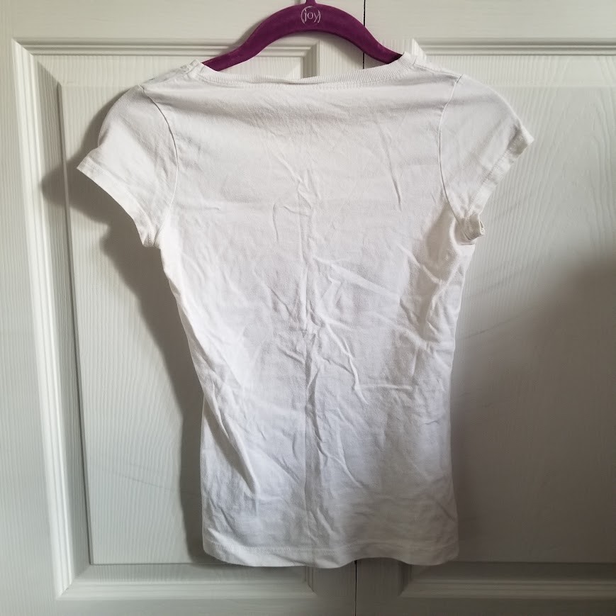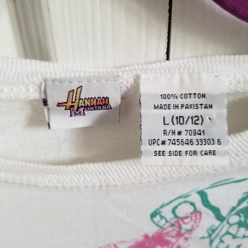 Vintage/Y2K white Hannah Montana girl's large (10-12) t-shirt. Can also fit a women's x-small. Has golden glitter. No flaws, EUC.