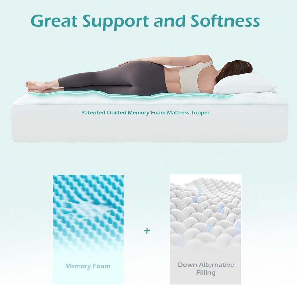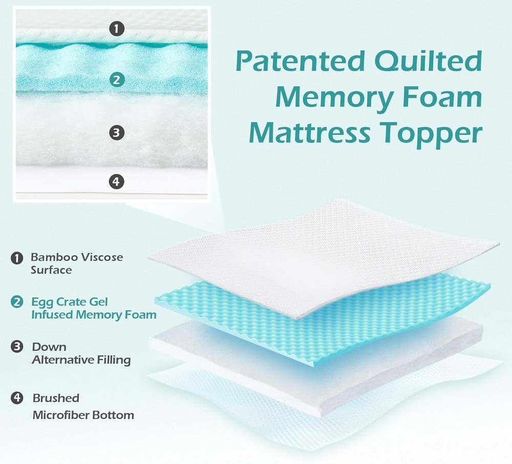 Hansleep Memory Foam Mattress Topper King, Pillow Top Mattress Pad King for Back Pain Relief with Egg Crate Gel Foam, Breathable Cover with Viscose Made from Bamboo, 78" x 80", White Item Description About this item SUPPORTIVE MEMORY FOAM LAYER: Hansleep memory foam mattress topper boasts a unique structure that combines a gel-infused memory foam layer and down alternative fillings. This design ensures weight distribution is even and pressure is relieved from different points of the body. It's an excellent addition for a firm mattress. PREMIUM SURFACE: This mattress topper features a 3D premium surface that wicks away night sweat. Combined with the cooling gel infused in the memory foam, it provides a breathable and comfortable sleep environment. DEEP POCKET DESIGN: The deep pocket mattress pad can stretch up to 21 inches deep, ensuring it fits snugly on any mattress and stays in place throughout the night. EASY TO INSTALL & MAINTAIN: The fitted sheet design of this mattress cover makes it incredibly easy to install on your mattress. It is spot clean only, which means it can be effortlessly cleaned and maintained, providing you with an effortless and hassle-free experience. CARE INSTRUCTIONS: Hansleep mattress topper comes vacuum-packed and may appear thinner upon unpacking. Please allow it two days to regain its shape and thickness. › See more product details Payment We accept payment only through PAYPAL Shipping We ship products worldwide through standard express courier service, it will reach within 7 to 10 days to abroad buyers, we ship the product after recieved clear payment and give full information about shipment to the buyer Return We accept product return within 7 to 21 days from delivery date but product should be in original position and not in damaged condition,the return shipping charges will be buyer responsibility