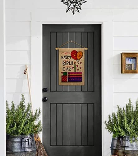 Happy Birthday Garden Flag with Wood Dowel – Celebration Cake Gift Party Decor