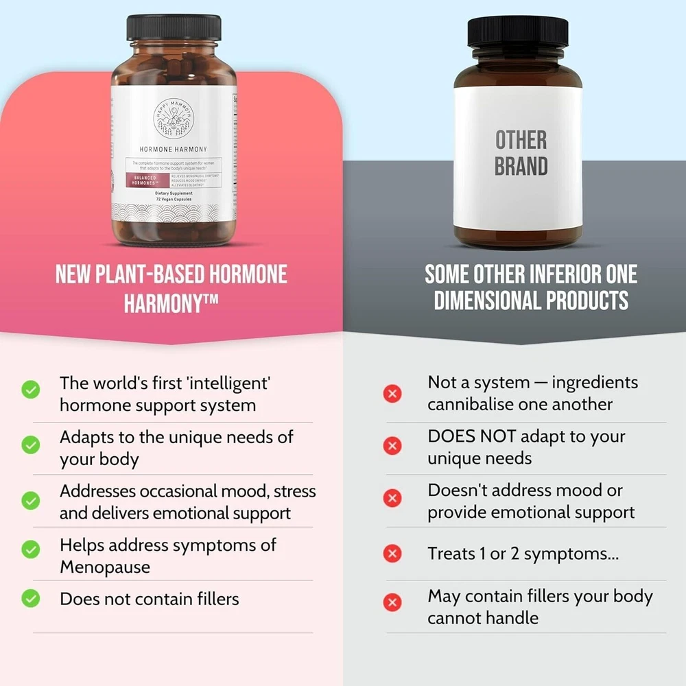 Happy Mammoth Hormone Harmony Complete Hormone Support System For Women 72 Vegan Capsules About this item GET YOUR OLD SELF BACK with the first-ever intelligent hormone-balancing system used by over 800,000 women of all ages. It has 12 natural nutrients that work together to help reduce menopause symptoms like hot flashes, hormonal balance, PCOS, fatigue, and more. Supports healthy perimenopause. And give you the body, health, happiness, and energy you want — even if nothing worked for you before. COMPLETE MENOPAUSE SUPPORT FOR LESS THAN A CUP OF COFFEE a day! For less than $2.50 a day, you get massive relief from your symptoms… So you can accomplish more, enjoy your life again and never feel limited by your own body anymore! WHY 24 SERVINGS IS BETTER THAN 30 - We recommend taking Hormone Harmony in cycles: First, take it for 5 days straight. Then take a 2-day break. Then, repeat the cycle. When you take a 2-day break, your body is not getting used to all the potent ingredients in this formula. Thanks to that, your body uses every single ingredient for your maximum benefit — which is impossible with products offering 30 servings. Plus, 24 servings enable us to keep the price lower - while giving you unmatched quality and ingredients you won’t find in any other product. 100% NATURAL & MADE IN THE USA. Hormone Harmony ONLY has natural ingredients without GMOs, pesticides, artificial ingredients, and other harmful substances. It’s made in a GMP-certified facility with organic plant extracts. Every batch is verified by an independent laboratory to guarantee the highest quality and the exact same ingredients as listed on the label. SATISFACTION GUARANTEED. If you are not satisfied with Hormone Harmony simply send us a message directly by clicking on your order and selecting 'Contact Seller'. We will work with you to make sure you are fully satisfied. #HappyMammoth #Hormone Harmony #Happy Mammoth Hormone Harmony #eBayhotselling #authentic