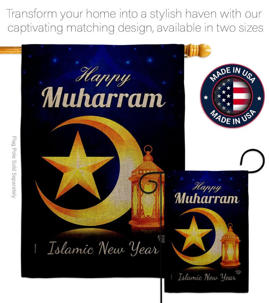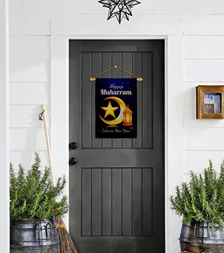 Happy Muharram Burlap Garden Flag Set Wood Dowel Celebration Islamic New Year...