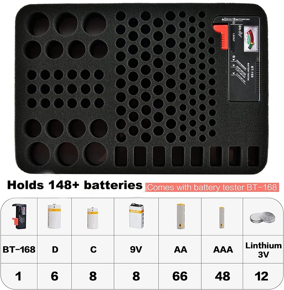 Store New Arrivals Add to Favorite View Feedback Contact Hard Battery Organizer Storage Box Carrying Case Bag Holder Holds 148 Batteries Description Style Back Cover Power Source Battery Powered Item Dimensions 3.54 x 3.54 x 2.76 inches Color Black Measurement Type Voltmeter Item Weight 454 Grams Maximum Operating Voltage 9 Volts Model 6543877185 Style Name Back Cover Size L Hard Battery Organizer Storage Box Carrying Case - Holds 148 Batteries AA AAA C D 9V - Package Include Battery Tester BT-168, it can store over 148 batteries with mesh pocket. Material and Dimension - HQ EVA material lightweight and extremely sturdy. Splash-proof and anti-fall. Inner remain the cut out foam, so you need to take them out when you put the batteries in, that will not deform the inside foam although it may cost some times, This is why we designed in that way. Case size: L 9.6" x W 13" x D 3.15" Compact space great way for organize - This battery case neatly holds the batteries snugly in place within the foam pre-cut slots and keeps the contact ends from contacting each other, Great way to organize your batteries easy for you to find whatever battery you looking for quickly. For more type batteries - It can hold 66*AA, 48*AAA, 8*C, 6*D, 8*9V, 12*Button type batteries( 3v lithium - CR 2032,CR 2016,CR 1632, CR 2025), total over 148 batteries and 1* Battery Tester. Note - Include a battery tester, Not include any batteries. Super convenient for you to distinguish which batteries need to be recycled. Product Description 1 Battery Organizer 2 Shock-proof 3 water-resistant 4 Scratch-proof Large capacity battery organizeer It can hold 66*AA, 48*AAA, 8*C, 6*D, 8*9V, 12*Button type batteries, 1* battery tester ABOUT US We offer the best prices around on high quality products. Our E-store includes media such as books, movies, music and games while offering electronics, toys, sporting apparel, clothing, tools, general home, garden items and more. SHIPPING We are always working hard to ensure your package arrives as soon as possible. Please understand that some factors like weather, high postal traffic, and the performance of shipping companies are outside of our control. We offer free shipping to the lower 48 states and ship within 2 business days of payment, usually sooner. We do not accept P.O. Boxes. Please provide a physical address. RETURNS We offer a 30-Day Return Policy on items which you are not completely satisfied with. You have the option for a full-refund or an exchange of the item. No returns are available on items shipped outside of the USA. PAYMENT We accept PayPal. CONTACT US This page content is yet to come Please ad us to your favorite seller and visit again later Thank You CUSTOMER SATISFACTION We try our very best to make sure every customer is completely satisfied. If there's a problem, message us! We're happy to help.
