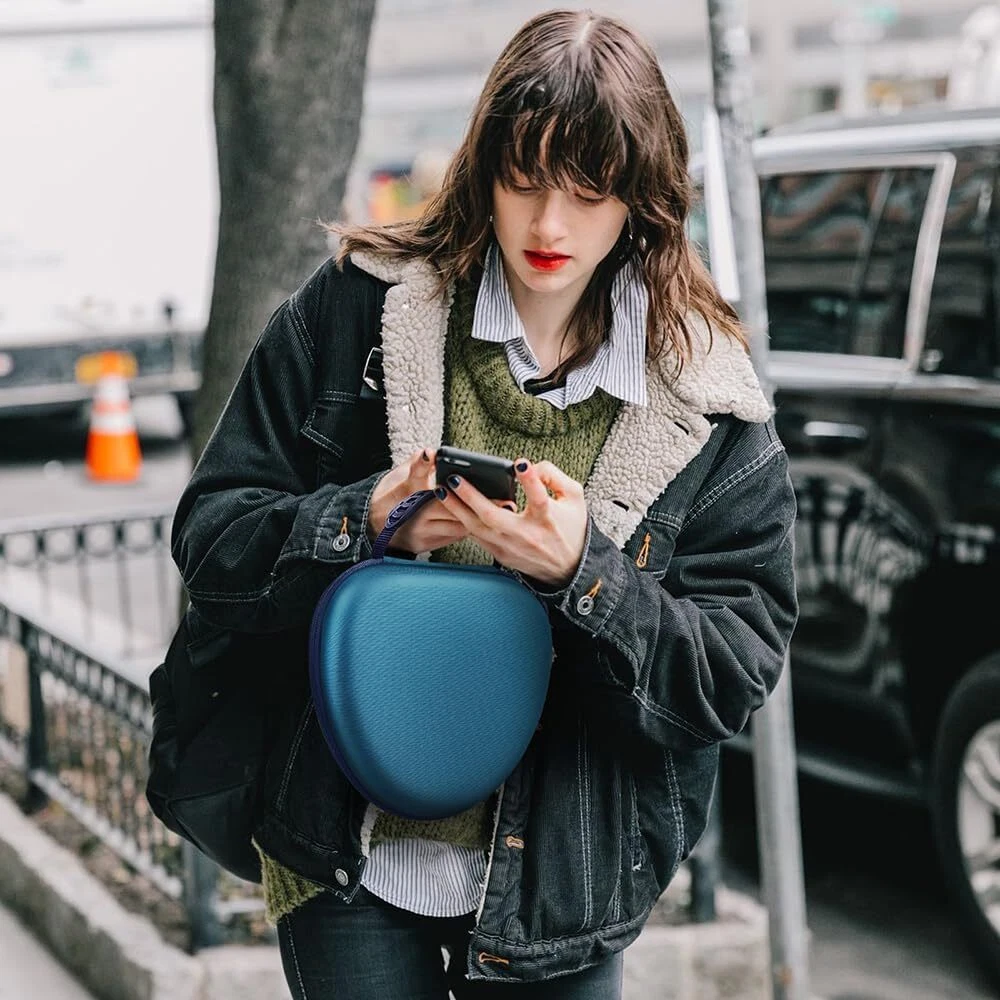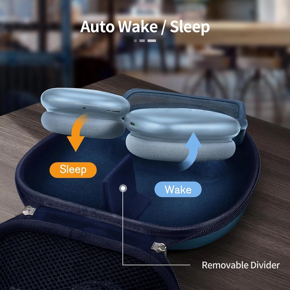 Home Payment Shipping Return Policy About Us Contact Us Feedback Hard Case for AirPods Max Headphone Travel Carrying Storage Bag Auto Wake/Sleep 【Special Design】Specifically designed for AirPods Max Headphone. Interior size: 8.2*7.9*2.7 in, Exterior size: 9.1*8.3*2.4. (Device and accessories are not included). 【Auto Sleep / Wake】Built-in velcro tab with magnets, when you put the AirPods Max in or out, the Bluetooth can be automatically disconnected (Auto Sleep) or connected (Auto Wake). Ultra-low-power mode immediately to preserve battery charge. 【More Organized】This hard case includes the perfect mesh pocket with YKK zipper for your cables, cords, chargers,earpads, adapters, ID card or any other accessories. 【Full Protection】Hard EVA exterior and soft lining interior case to bring AirPods Max from knocks, impacts, bumps, drops, spills, scratches, dust and water. Keep your AirPods Max safe. 【Easy to Carry】Comfortable hand strap is lightweight and compact, can fit in your bag, backpack, or luggage. Convenient, durable perfect for travel, the gym, or your commute to take anywhere.