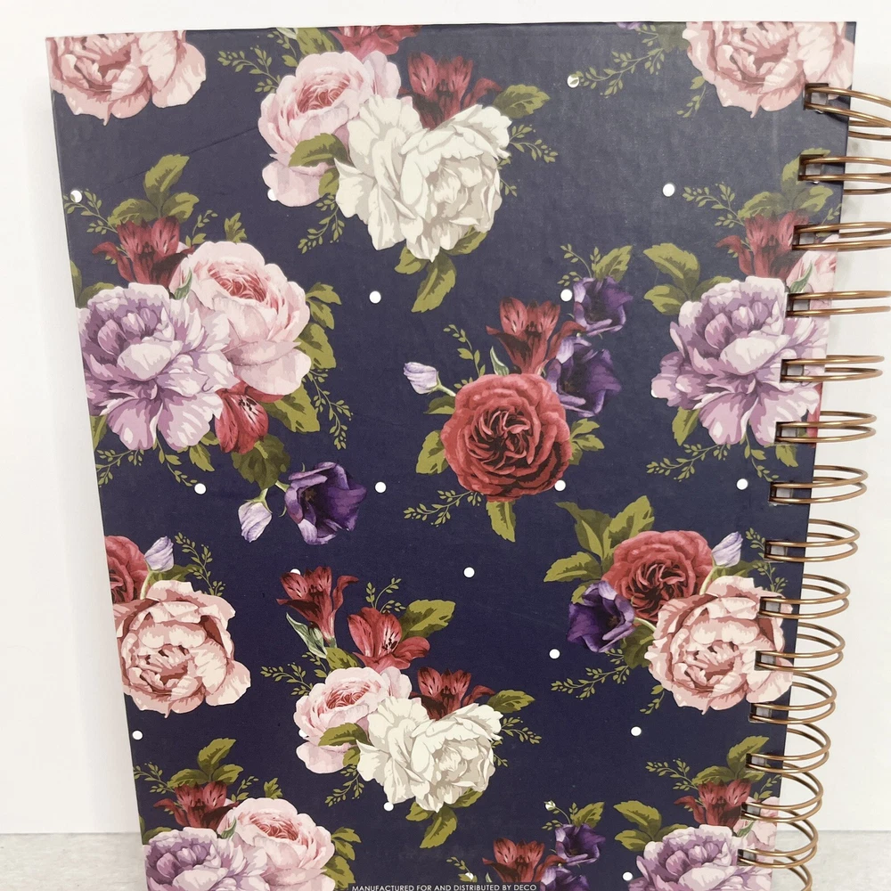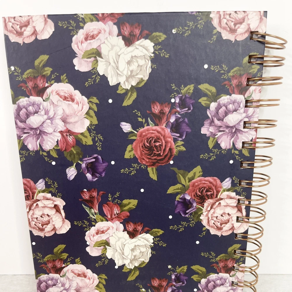Hardcover Spiral Journal Notebook 6x8 Lined Blessed Black Floral Pinks