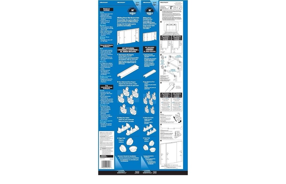 This Hardware Essentials Sliding Door Hardware Kit is perfect for creating a sleek and functional closet door. The kit includes all the necessary mounting hardware and is suitable for sliding doors up to 96 inches. The galvanized steel finish adds a touch of durability and elegance to your door, while the silver color complements any home decor. The kit's dimensions are 1.06 inches in height, 2.08 inches in depth, and 46.375 inches in width. The model number is 18396 and it is made by Everbilt. With this kit, you can easily install a new sliding door and enhance the functionality of your closet.