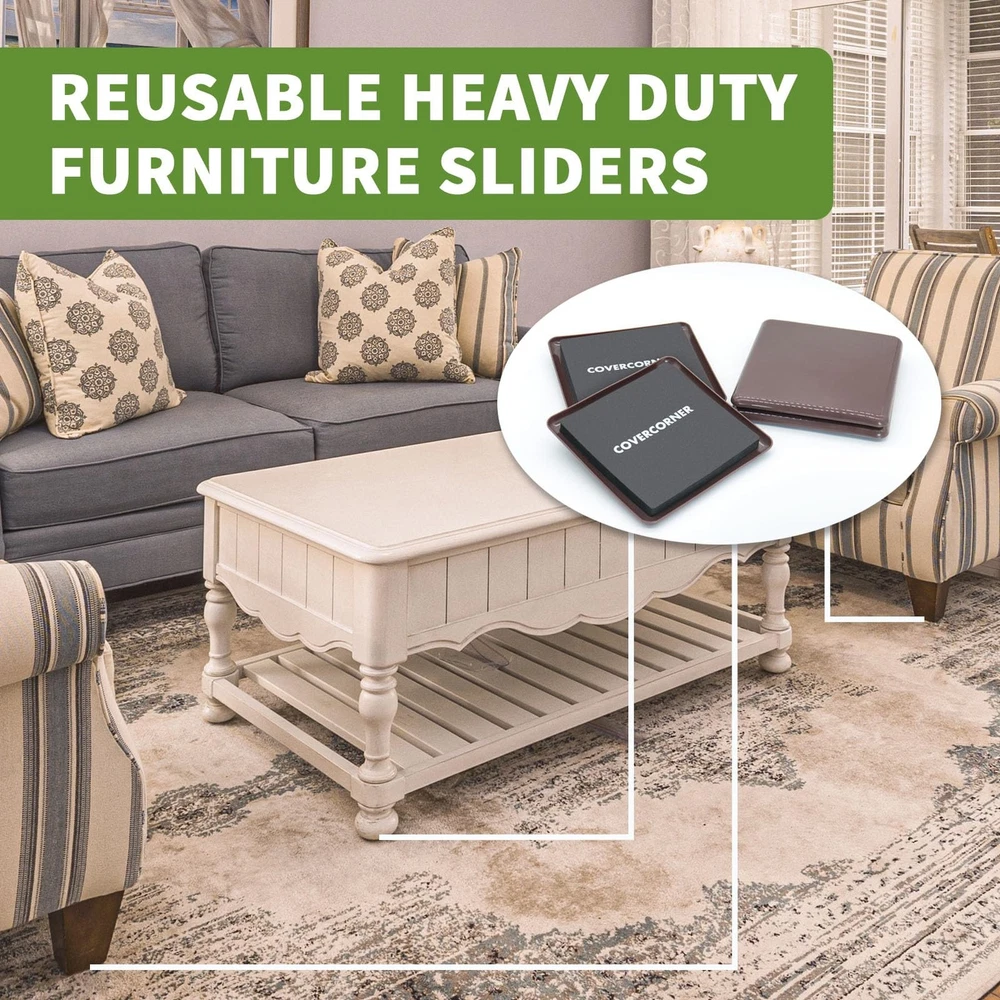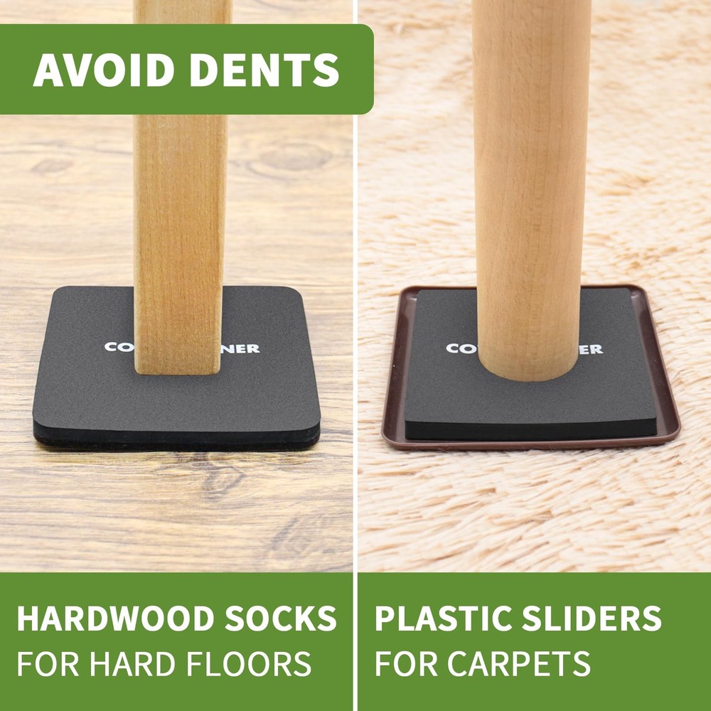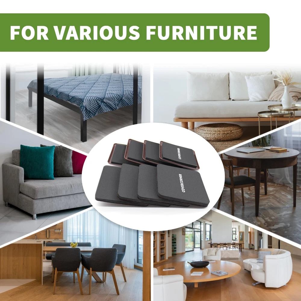 Compatible with All Types of Floors Combo Pack Made of EVA and Felt, or Plastic and EVA These sliders feature durable EVA foam that securely grips furniture for a long-lasting hold. No glue is used whatsoever – but the premium rubber foam securely and tightly grips your furniture, keeping them from moving around. IS YOUR FURNITURE TOO HEAVY TO MOVE IT EASILY? DO YOU SCRATCH FLOORS WHILE MOVING THE FURNITURE? FORGET ABOUT IT with FURNITURE MOVERS. There are 4 furniture sliders for carpet and 4 furniture sliders for hardwood floors in one pack. Just put our sliders for moving under the furniture! Sliders for moving furniture. Non-stick gripper pad, just use them under any furniture legs to move easily. 5'' – this is an ideal diameter for heavy furniture & items as they provide the best weight distribution on the floor. PREVENT SCRATCHES on floors and MOVE THE FURNITURE EASILY. PREMIUM MATERIAL & REUSABLE PURPOSE – our carpet sliders for heavy furniture made of PLASTIC & RUBBER FOAM and our floor protectors for hardwood floors are made of HEAVY FELT & RUBBER FOAM. There is no glue on the top of hardwood sliders–but the rubber foam securely grips furniture for a long-lasting hold. It is suitable for a variety of furniture, such as refrigerators, sofas, beds, pianos, bulky armoires, tables and more. PERFECT PROTECT - Just lift your furniture a few inches and slide these pads under the feet, then you will be able to slide the heaviest furniture around your house to create a non-scratch, non-slip surface. If you have any question, please feel free to our anytime. We will solve problems for you.