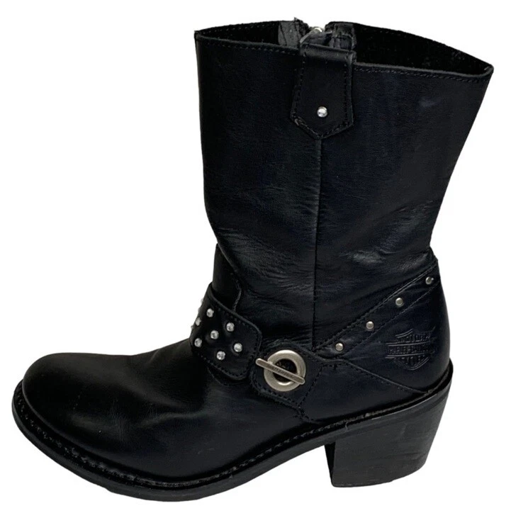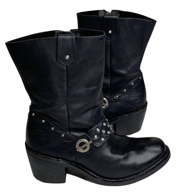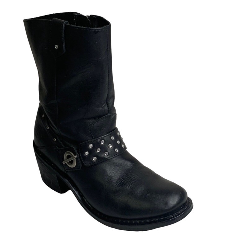 $ 184.78Burberry Womens Leather Saddle High Boots Size 8 Buckle Harness Round Toe Black