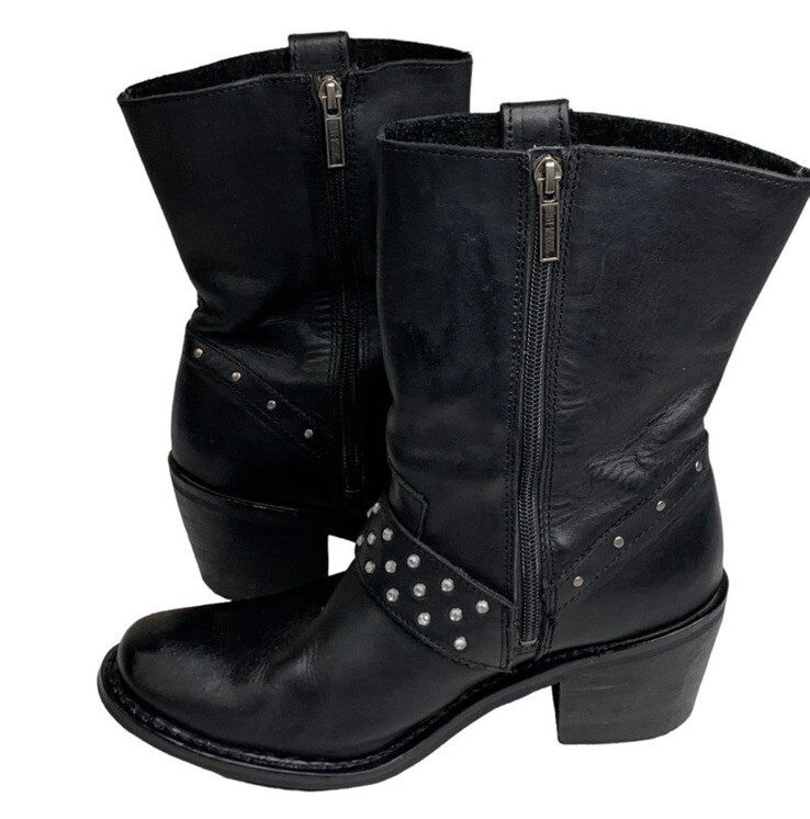 Condition Pre Owned in Great Shape No Known Flaws MSRP $260 Sturdy Full Side Zipper Silver Rivet Accents Band of Rhinestones Logo on Heel Clean Home Non Smoking No Indoor Pets Loft231206