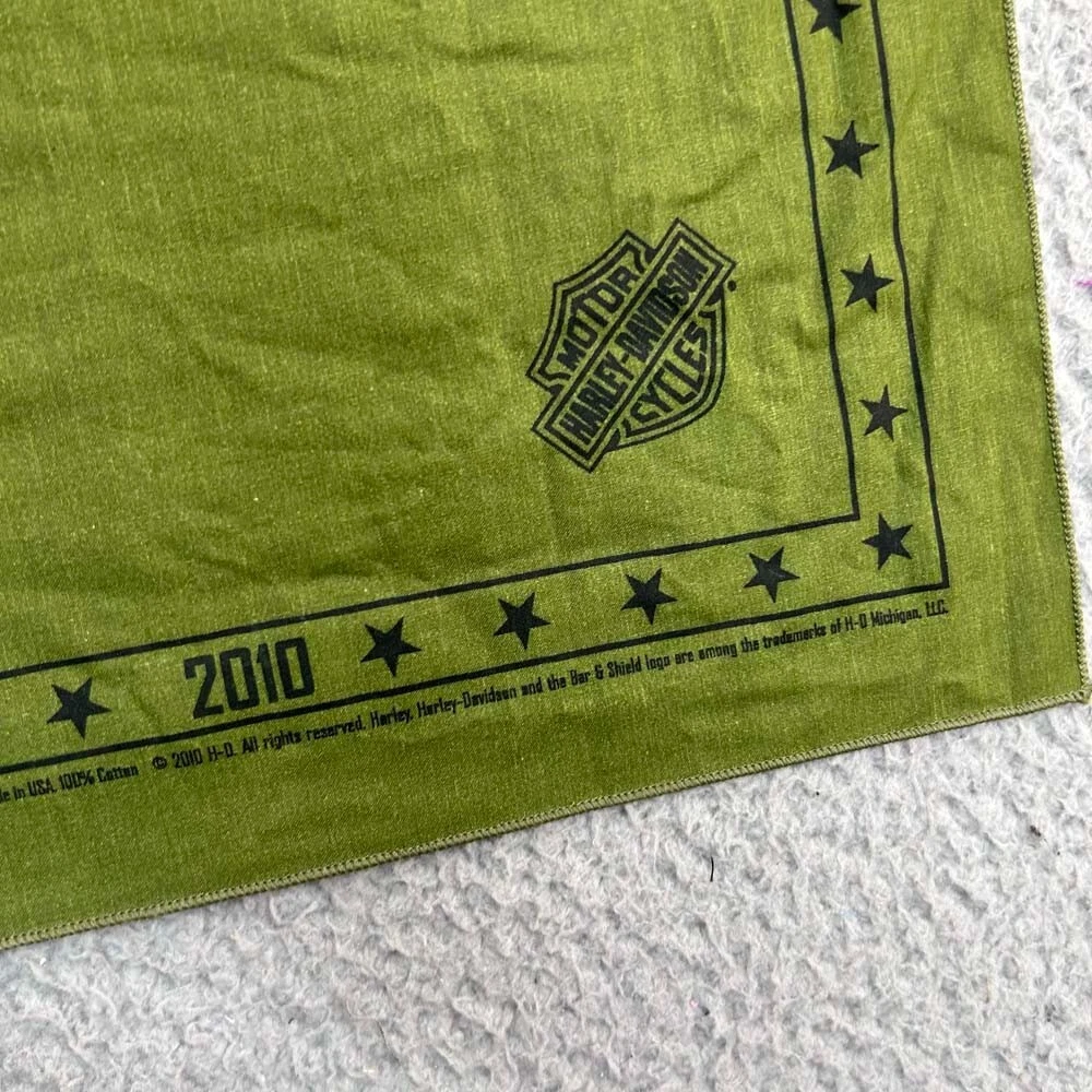 Style:Designer/ArtistBrand:Harley DavidsonHandmade:NoVintage:NoType:HandkerchiefSize:One SizeDepartment:UnisexSeller Notes:“No issues See Photos”UPC:Does Not ApplyColor:GreenTheme:Biker, Whiskeygtin13:Does Not Apply