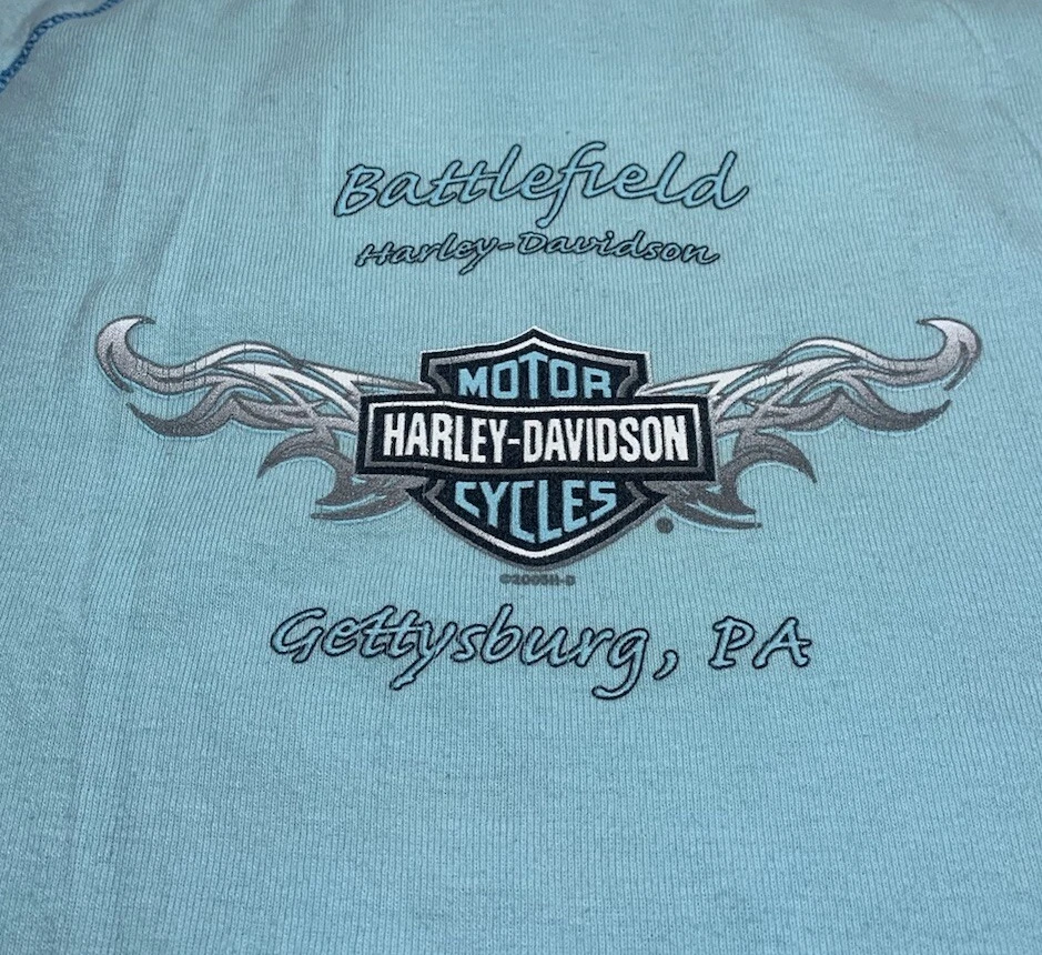 Harley Davidson Womens Shirt Short Sleeve XL Turquoise. Battlefield Harley-Davidson Gettysburg,PA.