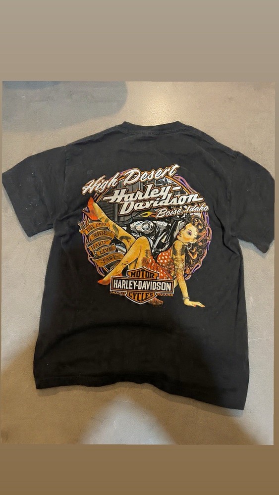 The Harley-Davidson Men's T-Shirt in size L is a classic and stylish addition to any man's wardrobe. Made from comfortable cotton material with a solid black color, this short-sleeve shirt features a crew neckline and a regular fit. Perfect for motorcycle enthusiasts and fans of the brand, this machine washable t-shirt is ideal for wearing during the summer, fall, and spring seasons. The iconic Harley-Davidson logo and motorcycle theme make it a versatile and timeless piece for casual wear.