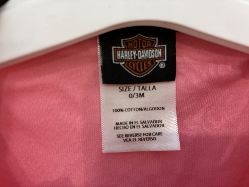 Harley-Davidson Motorcycles Baby Girl Angel Cotton Long Sleeve 1-Piece Pink 0/3M. Condition is pre-owned. Smoke free, pet free home. Shipped via USPS Ground Advantage. In very good condition. Free of rips or stains.