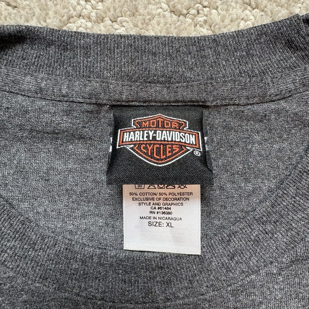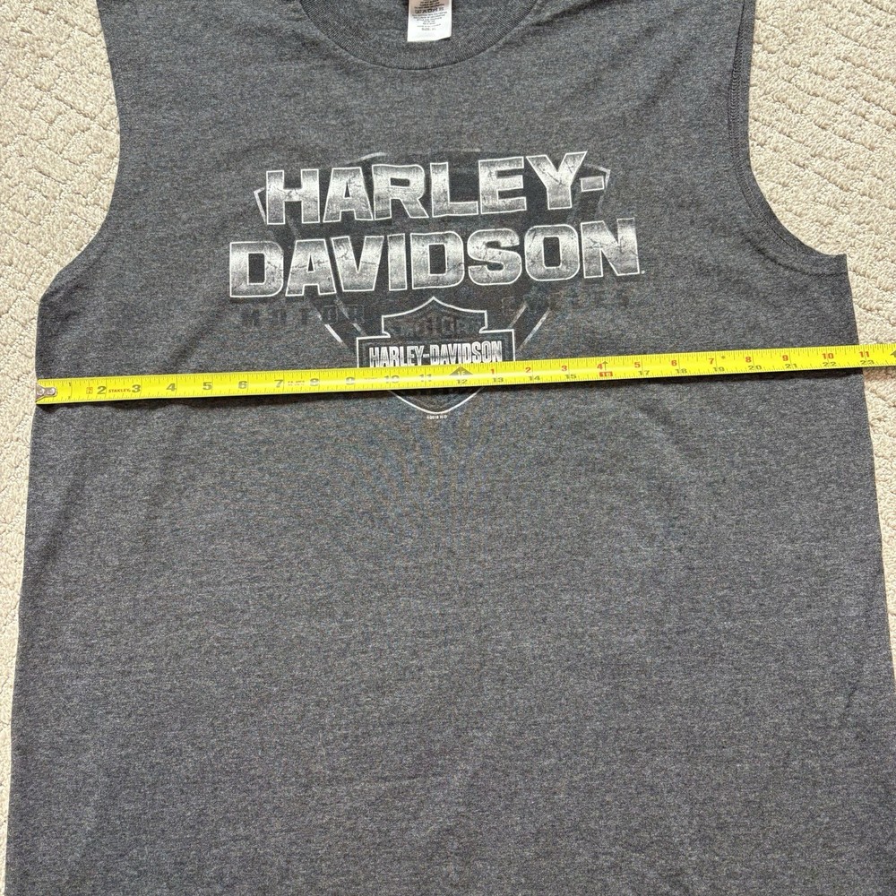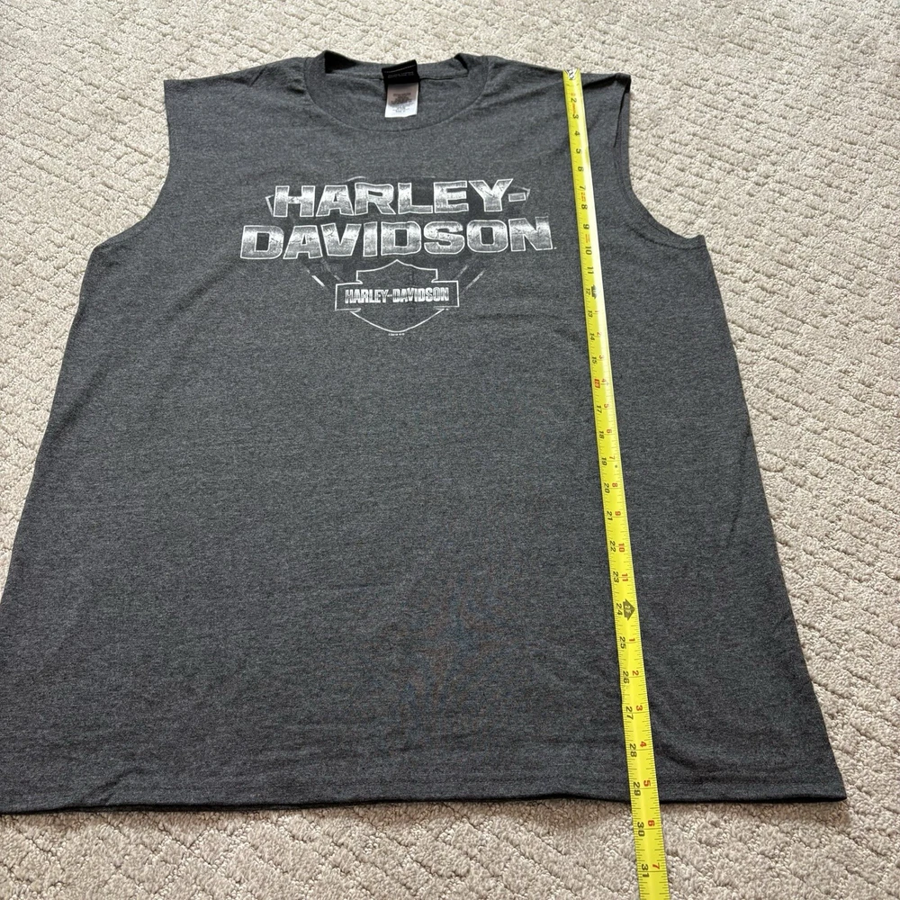 The Harley-Davidson Sleeveless T-Shirt in XL size is a stylish biker muscle shirt featuring a gray color and a graphic logo of the iconic Harley-Davidson brand. Made of comfortable cotton material, this T-shirt is perfect for the summer and spring seasons. The crew neck and sleeveless design offer a casual, easy-to-wear style that is both regular fit and machine washable for easy care. Whether you're a motorcycle enthusiast or simply appreciate the classic Harley-Davidson aesthetic, this T-shirt is a great addition to your wardrobe.