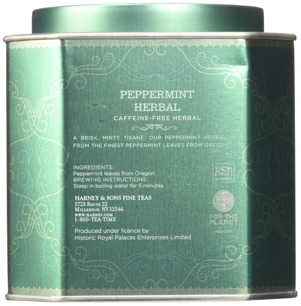 Harney & Sons Peppermint Herbal Tea in Sachets, Caffeine-Free Herbal, 30 Sachets Product Details Is Discontinued By Manufacturer : No Product Dimensions : 4 x 4.25 x 4 inches; 1.9 ounces Item model number : 35436 Manufacturer : Harney & Sons Brand: Harney & Sons Item Form: Teabags, Sachet Flavor: Peppermint Tea Variety: Peppermint Unit Count: 1.9 Ounce Our marvelously brisk Peppermint comes from Washington State, and the leaves produce a wonderfully aromatic and crisp tasting tisane. We find a cup of Peppermint can also get a pesky stomach under control in no time. 30 SACHETS - One tin contains 30 sachets of Peppermint Herbal. Each tea sachet brews a 12-ounce cup. Certified Kosher. Elegant tin with 30 sachets. Each sachet contains enough tea to brew up to two cups of tea, depending on how strong you like your tea. Brewing suggestions: Tea is only as good as the water it is brewed in. Use filtered water as needed. Use one sachet for each cup of tea desired. Pour 212F water over the tea and steep for 4 to 5 minutes. Remove the sachet. Relax and enjoy. PART OF OUR HISTORIC ROYAL PALACES COLLECTION Historic Royal Palaces is an independent charity that looks after the Tower of London, Hampton Court Palace, the Banqueting House, Kensington Palace, Kew Palace and Hillsborough Castle and Gardens. The Historic Royal Palaces organization helps everyone explore the story of how monarchs and people have shaped society, in some of the greatest palaces ever built. HARNEY & SONS IS A PROUD MEMBER OF 1% FOR THE PLANET Joining 1% for The Planet meant we could directly donate one percent of our total sales to the environmental organizations of our choice. Tea lovers are sure to relish this Harney & Sons Peppermint Herbal Fine Tea. The classic tea tin contains 30 1.9-ounce sachets of this herbal tea, each sachet brewing a 12-ounce cup. The leaves of this peppermint tea are aromatic and crisp, creating a bitter herbal infusion. Harney’s Peppermint is a caffeine-free herbal tea. This set would make an excellent addition to your tea collection at home. With its appealing tea tin packaging, it also makes a great gift idea for family and friends. Harney & Sons aim to deliver the most excellent quality tea possible. Enjoy your quality tea made with quality marvelously brisk Peppermint comes from Oregon, and the leaves produce a wonderfully aromatic and crisp tasting tisane. We find a cup of Peppermint can also get a pesky stomach under control in no time. Caffeine-free herbal. Historic Royal Palaces is an independent charity that looks after the Tower of London, Hampton Court Palace, the Banqueting House, Kensington Palace, Kew Palace and Hillsborough Castle.