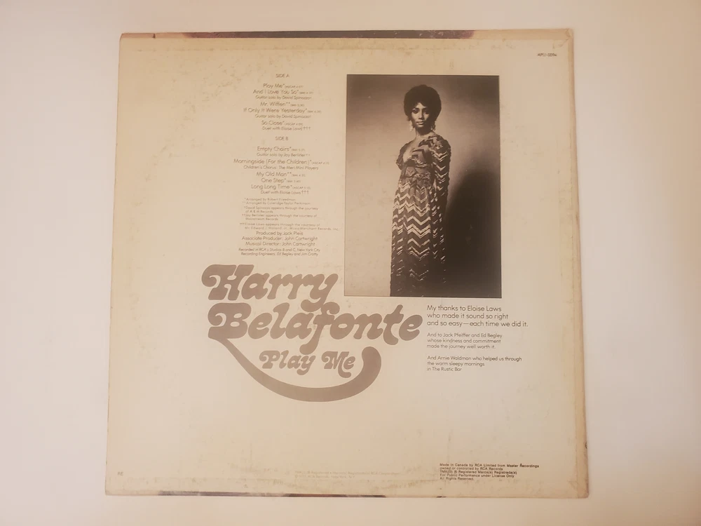 Harry Belafonte - Play Me (Vinyl Record LP) Record is in an enjoyable condition for listening. Minimal pops, skips, etc. COMBINED SHIPPING DISCOUNTS ARE ENABLED My eBay store has over 35,000 items to choose from. Each record after the first one is only $2.25/each for shipping. Must be all in one order. Discount is automatically applied at shopping cart. To continue, click "BUY IT NOW" or "MAKE AN OFFER".