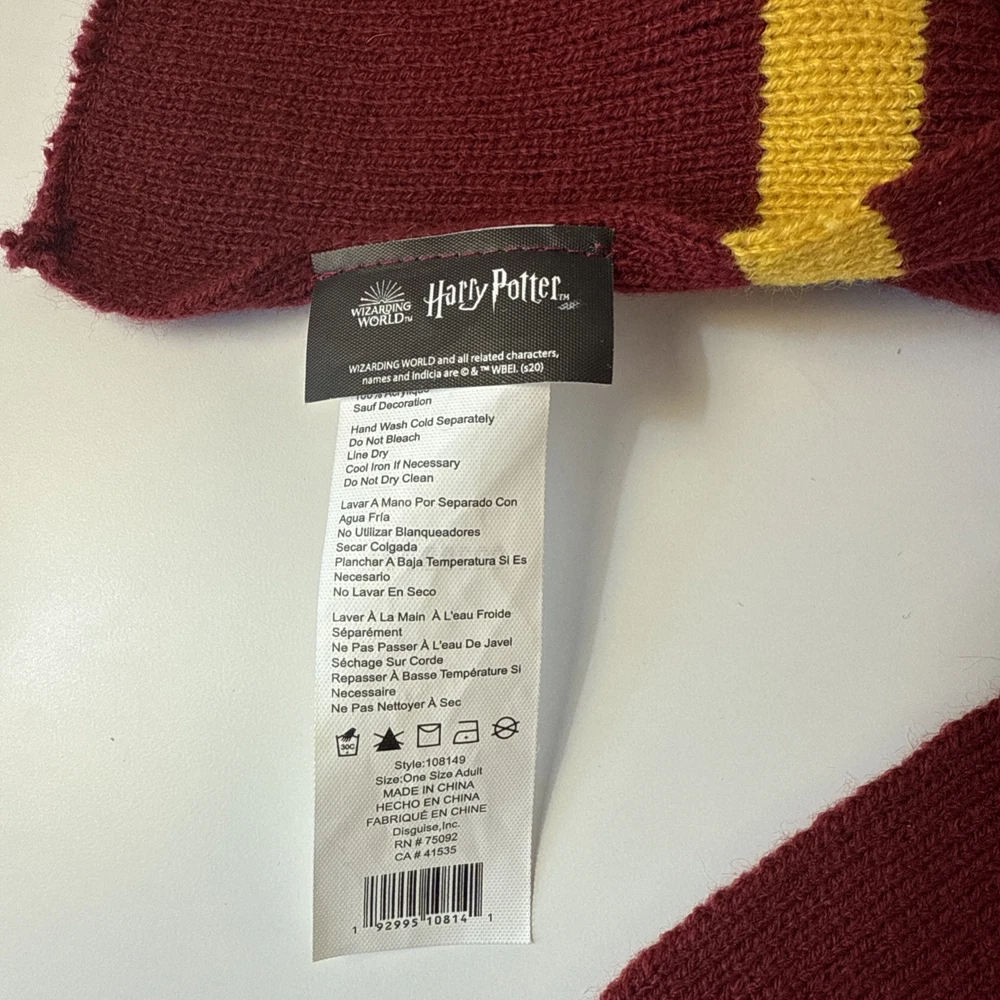 Harry Potter Gryffindor Knit Soft Warm Scarf by Wizarding World, a perfect addition for a theme party or celebration! Condition: Pre-owned, Never Used, Stored in Closet. I make every effort to photograph and describe any flaws or imperfections, so please enlarge the images and inspect them closely. Packing : I use appropriate packing materials to ensure your item arrives safely. To be eco-conscious, I recycle boxes, packing paper, bubble wrap, and other materials. Thank you for looking!