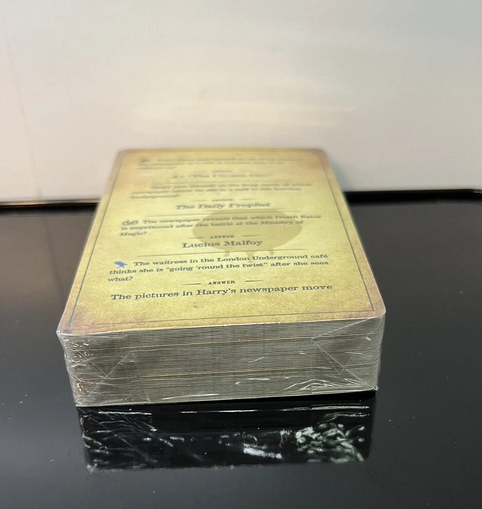 This Deck Is From Harry Potter The Ultimate Movie Quiz Trivia Game (full game not included in this sale) This listing is for the HALF- BLOOD PRINCE - FULL DECK NEW New Sealed ( see last photo for minor flaw) Use for replacement or Use Cards to test your trivia knowledge without owning the game. Smoke free Environment