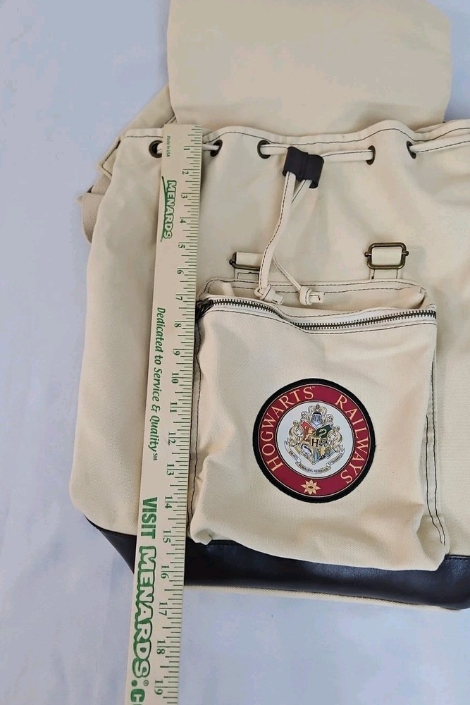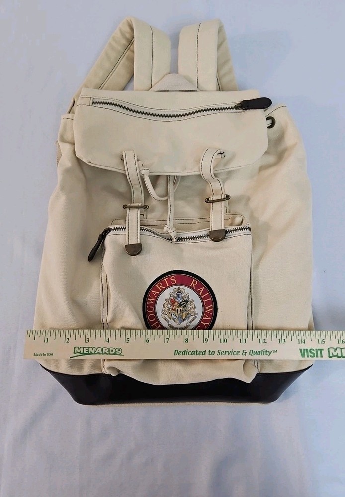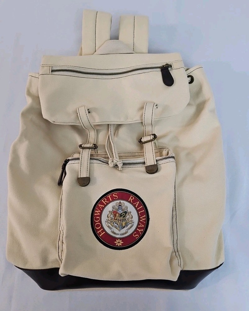 The Harry Potter Wizarding World Canvas/Leather Hogwarts Railways Backpack Bookbag is a must-have accessory for fans of the beloved fantasy franchise. Made by Universal Studios, this officially licensed backpack features the iconic Hogwarts Railways design, making it the perfect bookbag for any magical journey. Crafted from durable canvas and leather materials, this backpack is both stylish and practical, perfect for carrying your books and essentials while you explore the world of Harry Potter. Pre-owned Excellent Condition There may be a small mark or 2 that i missed but I'm pretty sure I got everything clean.