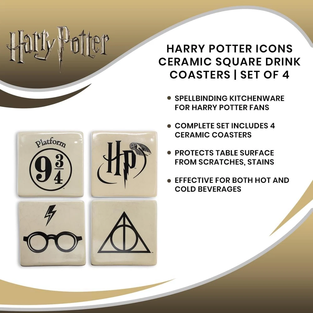 About Us Payment Shipping Returns Contact Us MENU Store Pages About Us Payment Shipping Returns Contact Us Store Categories Costumes & Accessories Apparel Figures & Collectibles Games & Toys Home & Office Party Supplies & Decoration Other Shop by Category Costumes & Accessories Apparel Figures & Collectibles Games & Toys Home & Office Party Supplies & Decoration Other Store Newsletter Sign up to receive special insider notifications of deals, promotions, and new items! SIGN UP Satisfaction Guaranteed Combined Shipping Worldwide Delivery Harry Potter Icons Ceramic Square Drink Coasters | Set of 4 Click Thumbnails to Enlarge Item Sku: UGT-HP11995-C Manufacturer: Seven20 Item UPC: 842906119956 Manufacturer ID: HP11995 Product Description WIZARDING WORLD TABLETOP DECOR This set of Harry Potter Icons Drink Coasters from Thirstystone are made of a special absorbent ceramic stone. Just like enchanting your tabletops with a protection spell, these drink coasters absorb drips and beads of water that leave the surface dry. The coasters feature a non-slip cork backing to ensure that your surfaces do not get damaged by scuffs and scratches. HOME & KITCHEN COLLECTION FOR POTTERHEADS Place them on your dining table, coffee table, office desk, and other common surfaces that could use a touch of magic. Officially licensed, this 4-piece coaster set makes a spellbinding addition to any Harry Potter fan's home kitchen essentials. This set of Harry Potter Thirstystone coasters are made from a special absorbent ceramic stone that absorbs drips or beads of water leaving the surface dry. Also, the coasters feature a cork backing to ensure that your surfaces do not get scratched! Officially licensed, this set of four coasters makes a magical gift to any Harry Potter fan. Protect Your Tables Like Magic: Tired of water rings showing up on your tabletops? Solve the issue using a bit of magic with these Harry Potter drink coasters inspired by the Wizarding World. PROTECT YOUR TABLES: Tired of water rings showing up on your tables? Solve the issue in style with these amazing Harry Potter coasters. Each coaster can hold one cup or mug and protect your table from unsightly rings! Fun For Any Muggle: These drink coasters feature familiar icons. Complete set includes the Deathly Hallows symbol, Platform 9 3/4, Harry Potter's glasses and scar, and HP initials with a golden snitch. FUN FOR ANY MUGGLE: Fans of the hit movies and books will enjoy these coasters featuring the Deathly Hallows symbol, Platform 9 3/4, Harry's glasses and scar, and the initials HP with the golden snitch! Spellbinding Quality For Potterheads: Super absorbent ceramic coasters feature cork backings. Each drink coaster is designed to hold one cup or mug, protecting your tables from unsightly rings. HEAVY DUTY: Super absorbent ceramic coasters with cork backing. Designed With Potter Magic: Easily protect against spills and stains. Each coaster measures approximately 4 inches square and .25 inches thick, covering a wide surface area to prevent damage. DIMENSIONS: Each coaster measures 4.25 inches square and .25 inches thick. Wizarding World Kitchenware: Fans of the Harry Potter movies and books will enjoy this spellbinding kitchen decor. Rep your fandom with these officially licensed Harry Potter Icons Drink Coasters. OFFICIALLY LICENSED: A perfect gift for Witches and Wizards! > Payment Terms TO CHECK OUT Please use the Ebay checkout system to complete the purchase of your item(s). Orders that are not checked out via the Ebay checkout system may be significantly delayed. DON'T LET YOUR EXCITEMENT OF ORDERING GET THE BETTER OF YOU. Please take a moment to check your order over carefully before you pay. Check the Address, the Quantity, the Size (we cannot substitute) and/or Color (when applicable), and the Method of Shipment. Include any special requests in the Notes section of the payment. Never submit an order that is not entirely correct. When you click the "Submit" payment button, you are giving us the go light to process your order ASAP and with our automation, your order is likely to be processed within a few short minutes of receipt of payment, and we simply cannot go back and redo things. One or two minutes of checking now can save much disappointment and inconvenience. PAYMENT OPTIONS Paypal Paypal Echecks (This will delay your order 2 to 10 days) Credit Cards (VISA/MASTERCARD/DISCOVER) If you have any questions or problems when attempting to checkout, you can email us through Ebay . SALES TAX We are required by law to collect Illinois & South Carolina State Sales Tax. All shipments within Illinois & South Carolina will be charged sales tax. IF YOU DO NOT PAY Winning bidder must complete payment within 7 days, unless you are purchasing multiple items. If payment is not received by the 14th day, you will be reported to eBay as a non-paying bidder and the item will be re-listed. ORDER CANCELLATIONS If a bid is accidentally or inappropriately submitted and the bid has not yet been paid for ,then we can request a mutual bid cancellation from eBay upon your notice, but such requests are made solely upon our discretion. However, our ordering system is mostly automatic which means the processing of your order commonly begins within seconds of your payment, so it is not possible to change or cancel a bid once it is paid for. (No exceptions.) Shipping Terms HOW MUCH IS SHIPPING? Please click on the "Shipping and Payments" tab above to see the additional shipping options and their costs. We do ship outside of the continental USA (Hawaii, Alaska, Puerto Rico, APO addresses, etc) and to PO Boxes. The costs to ship to these fabulous areas are more. Because of this, we reserve the right to bill you for these additional costs. These costs vary based on the size and weight of the item, but generally range between $5.00 and $20.00. A representative will email you for shipping payment after you pay for your item. We also do a great job of shipping to places all