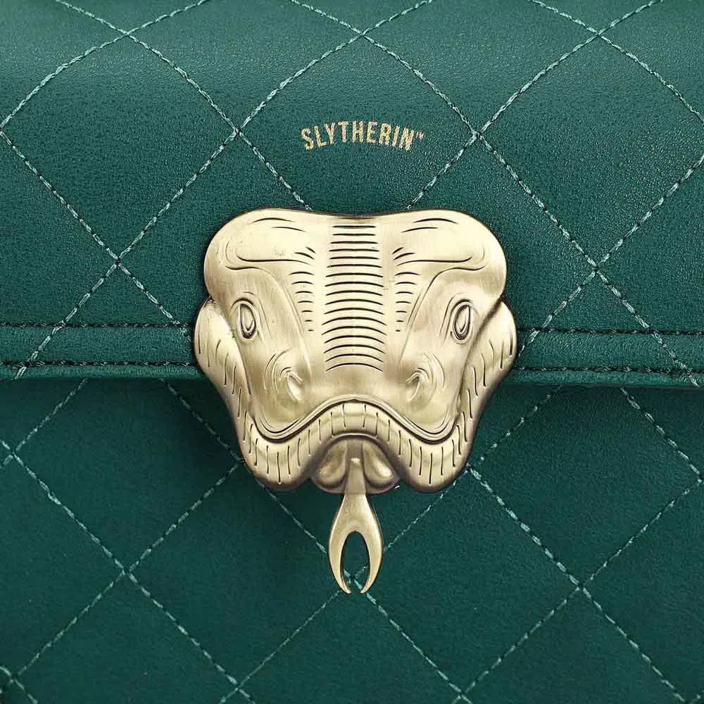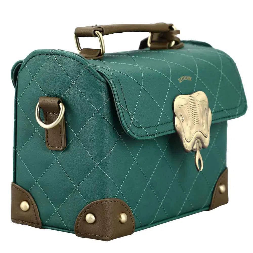 Harry Potter - Slytherin Mini Trunk Handbag - Bioworld Condition: New The Harry Potter - Slytherin Mini Trunk Handbag by Bioworld is a must-have accessory for fans of the wizarding world. Made from durable faux leather, this stylish handbag features the iconic Slytherin house design, making it a perfect addition to any Harry Potter collection. Whether you're a proud Slytherin or simply a fan of the series, this handbag brings a touch of magic to your daily style. With dimensions of 7.5" L x 5.9" W x 3.75" H, this mini trunk handbag offers a compact yet spacious design, ideal for carrying small essentials. It’s perfect for those who want to showcase their love for Slytherin while maintaining a sleek, fashionable look. The bag does not require any assembly, and it’s ready to use straight out of the box. Recommended for ages 13 and up, this handbag makes a great gift for Harry Potter fans or anyone who loves unique, fandom-inspired accessories. The faux leather material ensures durability while maintaining a premium look and feel, making it a long-lasting addition to your wardrobe. Whether for casual wear or special occasions, the Slytherin Mini Trunk Handbag adds a magical flair to any outfit.