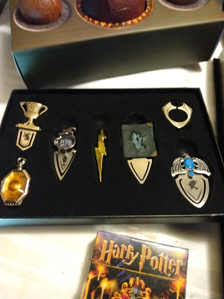 I listed these as used only because they have been stored for a while and the boxes are not in mint condition. And there is not a box for the quidditch balls. 4 wands 3 Funko plush, bookmarks playing cards, poster. All contents in good condition. Would make a great Christmas present for the Harry Potter lover.