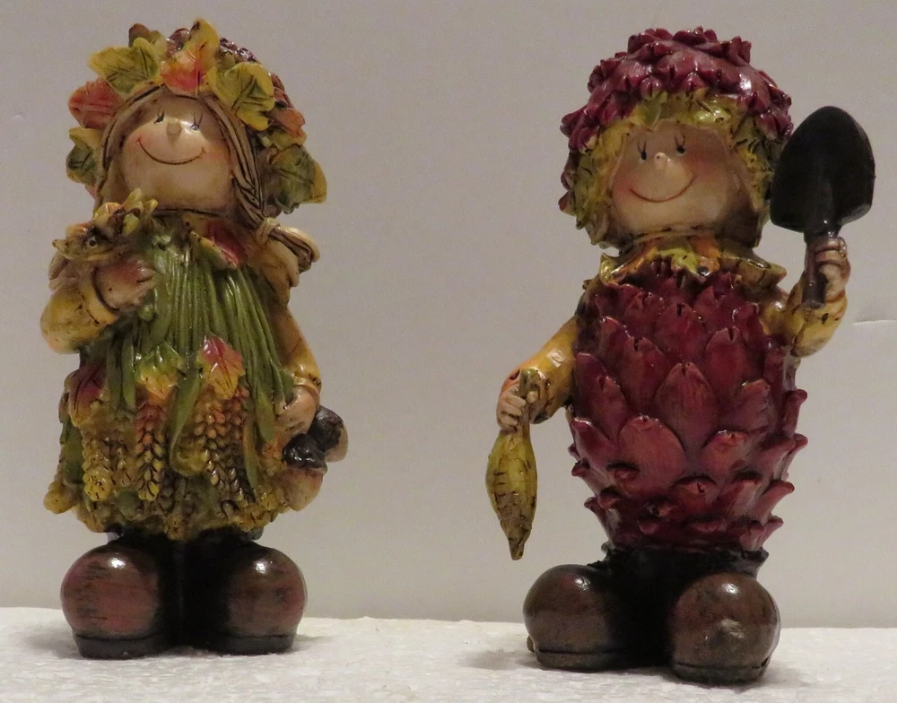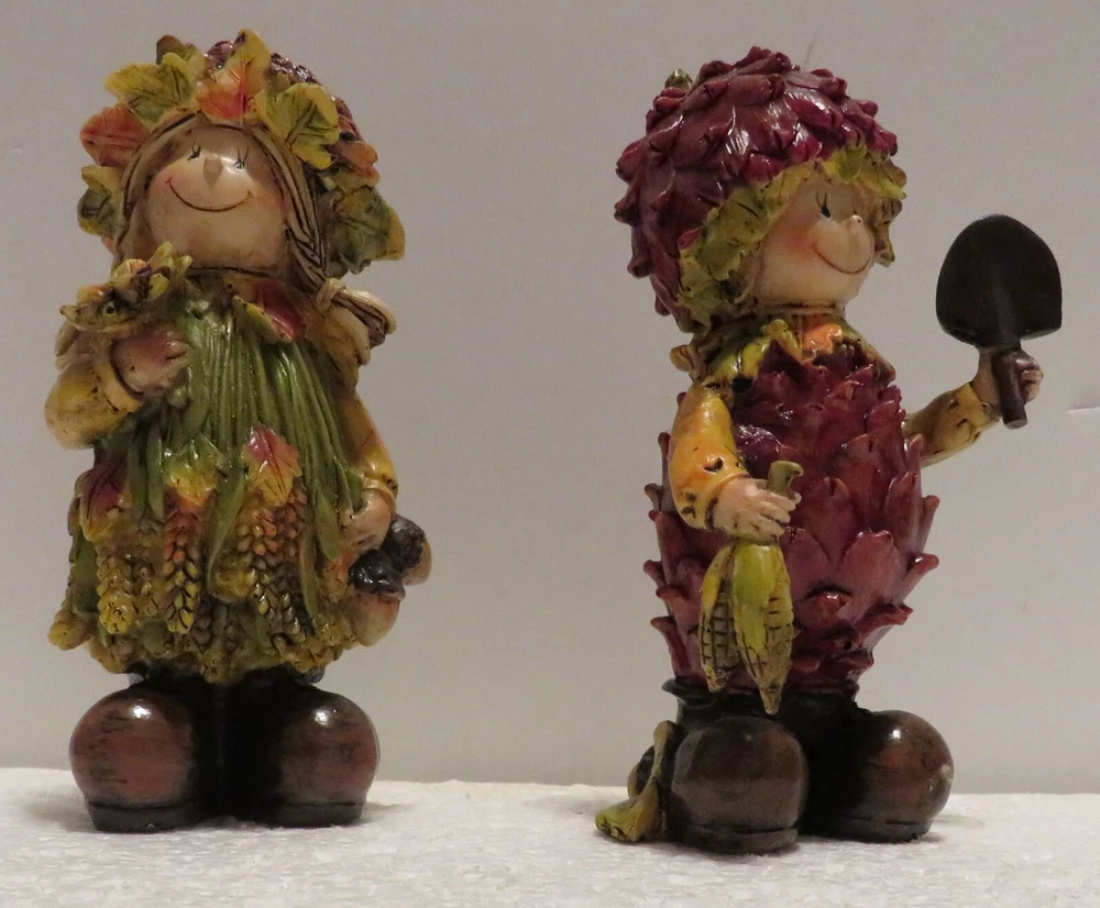 Harvest Children Figurines Made of: Resin Male & Female Dressed for the season Size is approximate: 4.50" Tall **Disclaimer** Actual color may be slightly different from the picture shown. Please ask questions or concerns you may have prior to purchasing to ensure a positive experience. Penny_Pinching_Jewelry is an online-only business. If purchasing more than 1 item please pay for them all at one time as we do combine items for safest shipping. Items typically ship within 1-2 business days after payment is received.