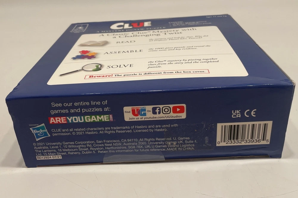 Hasbro Clue 1000 piece mystery jigsaw puzzle New/Sealed