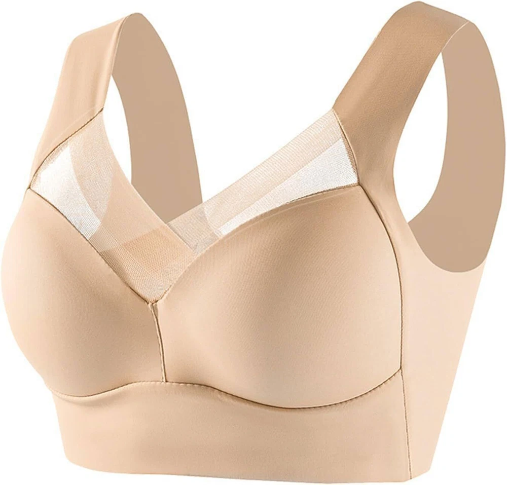 Well Made: Sturdy design and skin-friendly breathable fabric keep you dry and well-conditioned all day long Comfortable Bra: Wide shoulder strap design provides excellent shoulder support and reduces shoulder burden Fits Perfectly: Elastic enough to smooth side breast and back fat for a flattering silhouette Feeling of freedom: Innovative knitting technology, soft, light, comfortable all day long, not directly attached to the skin, feels like wearing nothing Specification: Name: Posture Correcting Bra Special design: Highly elastic wide shoulder straps, comfortable and streak-free Material: 80% Nylon, 20% Spandex. Color: Royal Blue/Beige/Black/Blue/Pink Feature: 1. Correct bad posture, straighten your back, and improve bending, hunchback, and chest problems! 2. The wide shoulder strap design reduces the burden on the shoulders and protects the chest. Packing list: 1 x Hatmeo Bra Note: 1. Due to the different display and lighting effects, the actual color of the product may be slightly different from the color shown in the picture. Thanks! 2. Due to manual measurement, a measurement deviation of 1-3cm is allowed.