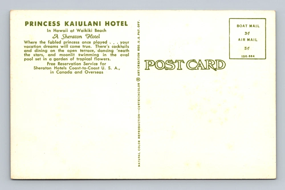 Hawaii HI Waikiki Beach Princess Kaiulani Hotel Vintage Postcard Postal Post PC
