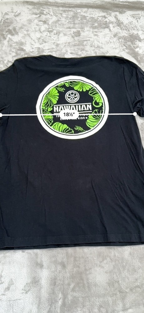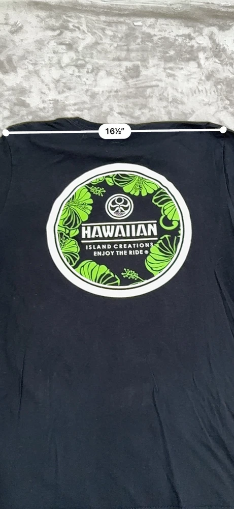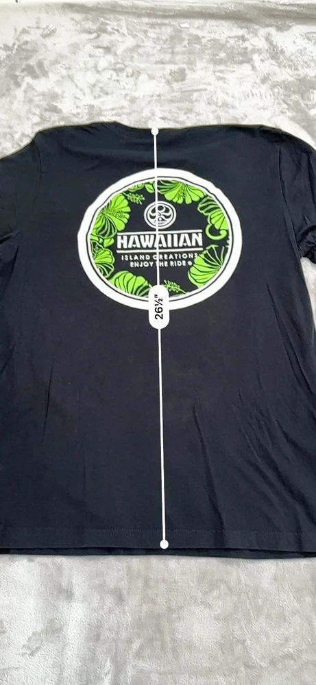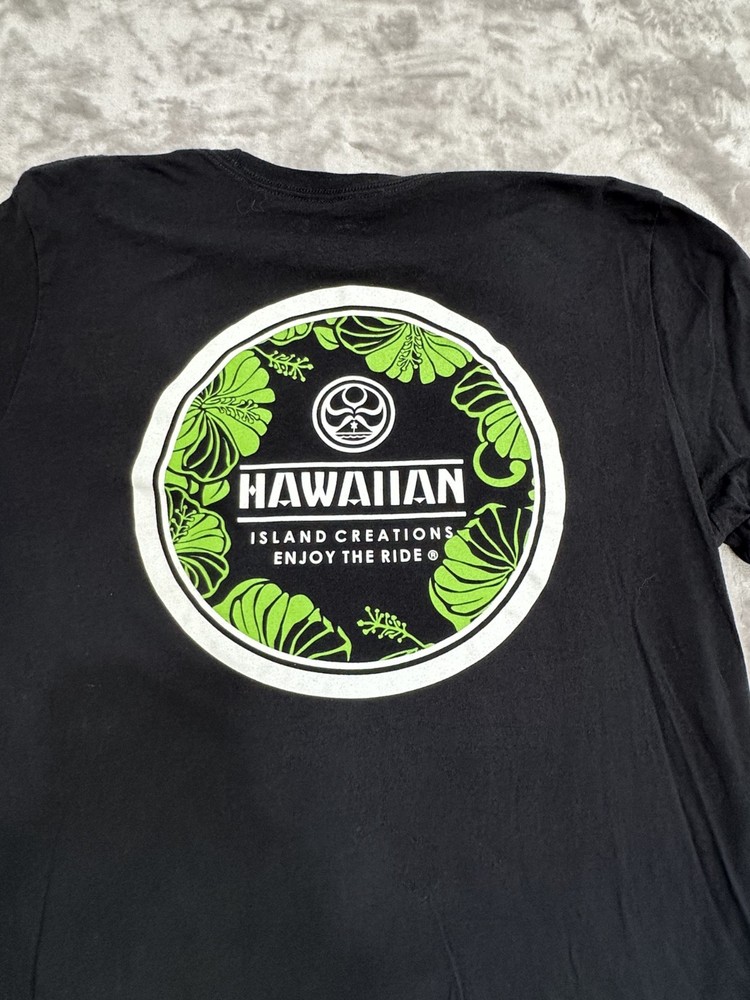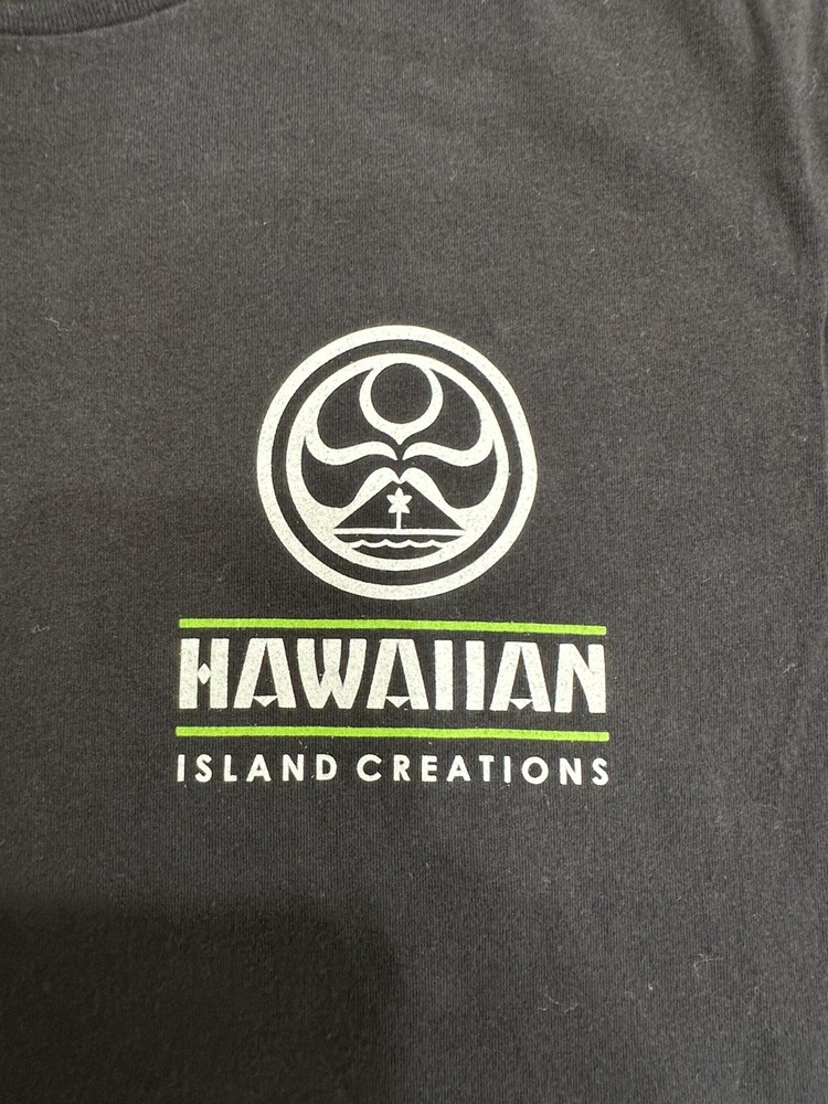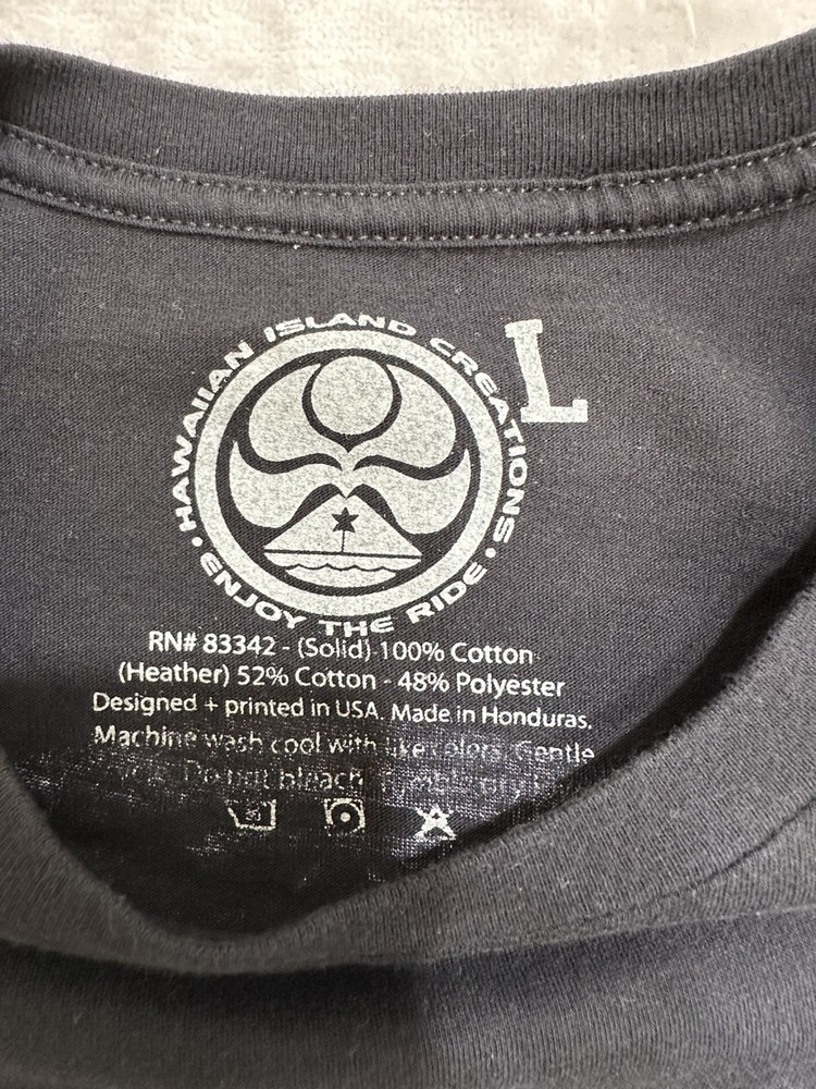 This Hawaiian Island Creations T-Shirt in Men's size Large features a solid black color with a Hawaiian theme, perfect for those who love surfing. Made of a blend of polyester and cotton, this short sleeve crew neck shirt is machine washable and suitable for all seasons. The shirt showcases the brand's logo as an accent, adding a unique touch to the regular fit design. Ideal for casual wear, this T-shirt is a great addition to any man's wardrobe who appreciates Hawaiian style. * Comes from a smoke free environment * Clean and ready to be worn * No holes or stains unless otherwise noted * Measurements are in the photos - please check all measurements to make sure this item compares to something you currently own that is similar. Items often vary despite what the labels state. * Ships quickly and safely using USPS Ground