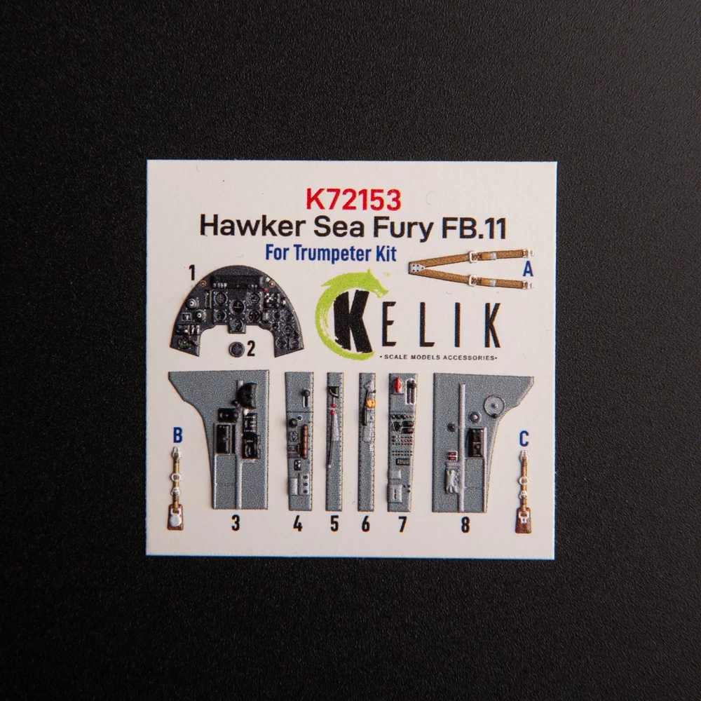 Hawker Sea Fury FB.11. Interior 3D Decals (for Trumpeter Aircraft model kit) Scale 1:72 KeliK K72153 Transform Your Scale Model with KeliK 3D Decals β Realism That Stands Out Take your model-building to the next level with KeliK 3D decals β the perfect fusion of precision, quality, and ease of use. Whether you're a seasoned builder or just starting out, our decals add unmatched realism and depth to any plastic model kit . Manufacturer: KeliK (Ukraine) Country/Region of Manufacture: Ukraine Scale: 1:72 Model (SKU): K72153 Condition: New in Box π¬ Need more stock? Weβve got you! Message us to customize your order quantity . As direct partners with manufacturers, we restock fast to meet your needs. π― Rapid replies assured! Available all day, with only time zones causing minor delays. π π Order Transparency We're here to help and will keep you informed on your order status. π Characteristics of Kelik 3D Decals Material: Paper, Acrylic (3D Decals) Category: Interior 3D Decals Type of equipment: Aircraft Recommended kit: Trumpeter Country of origin: United Kingdom Skill level: Advanced Type aircraft or vehicle: Hawker Sea Fury FB.11 Why Choose KeliK 3D Decals? Ultra-Realistic Finish β Each decal features highly detailed textures and accurate markings, replicating real-life elements with astonishing clarity. Tailored Compatibility β Custom-designed to fit specific kits from top brands, making application smooth and adjustment-free. Durability You Can Trust β Made from top-tier materials, our decals resist moisture, UV exposure, and physical wear. Effortless Application β No special tools needed β achieve a professional-grade look in just a few simple steps. Give your model the edge it deserves. Order KeliK 3D decals today and bring your project to life with breathtaking detail! π Take Your Scale Modeling to the Next Level! ................................................. Step into the extraordinary world of scale modeling with our premium selection of scale model accessories , crafting supplies, and tools. Whether you're a seasoned modeler or just starting, we offer everything you need to create lifelike replicas of automobiles, aircraft, ships, and trains. Elevate your projects with: π¨ Miniature Components for added realism. π οΈ Precision Tools to craft every detail flawlessly. π‘ Supplies designed to unleash your creativity. Let your imagination soar with the best in scale model craftsmanship! π Customer Support: Fast response times Friendly service & custom order assistance Need multiple items? Message us β we can adjust quantity or restock quickly! π About Us ποΈ We provide a wide selection of 100% brand-new products at competitive prices βdirect from manufacturers to you. π¬ Need help? We're always here to assist you! βοΈ Enjoy a simple, secure, and worry-free shopping experience. π³ Payment π΅ All eBay payment methods accepted, giving you convenience and flexibility. π‘οΈ Transactions are protected by eBayβs Buyer Protection Program for your peace of mind. π Shipping Details βοΈ Fast & Reliable Shipping : Orders are shipped via trusted airmail services and delivered by your national postal service. π¦ Tracking Included : Monitor your package every step of the way. Shipping from Ukraine . Estimated delivery: 10β25 days . Handling time: 1β5 business days . π Shipping Discounts π° Save more with combined shipping discounts ! 50% off shipping for each additional item. π§ Request an invoice before payment for an updated total. π Hassle-Free Returns π Not satisfied? No worries! β Refunds issued promptly upon receipt of the item in its original condition. π― Shop with confidence and craft your perfect models today!