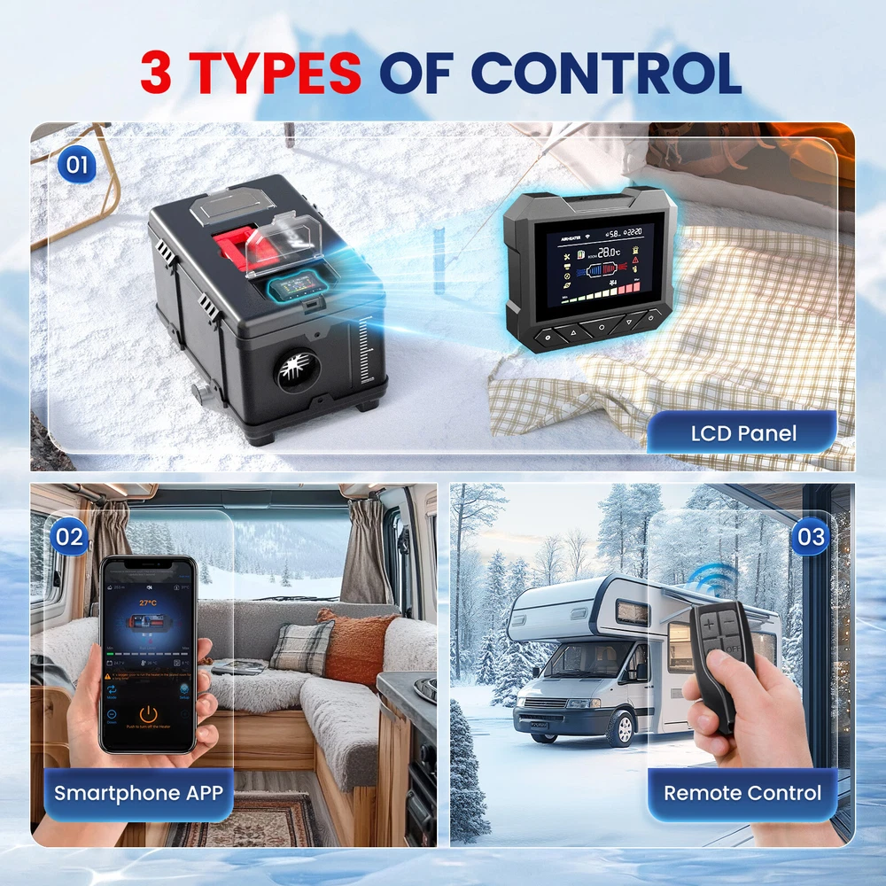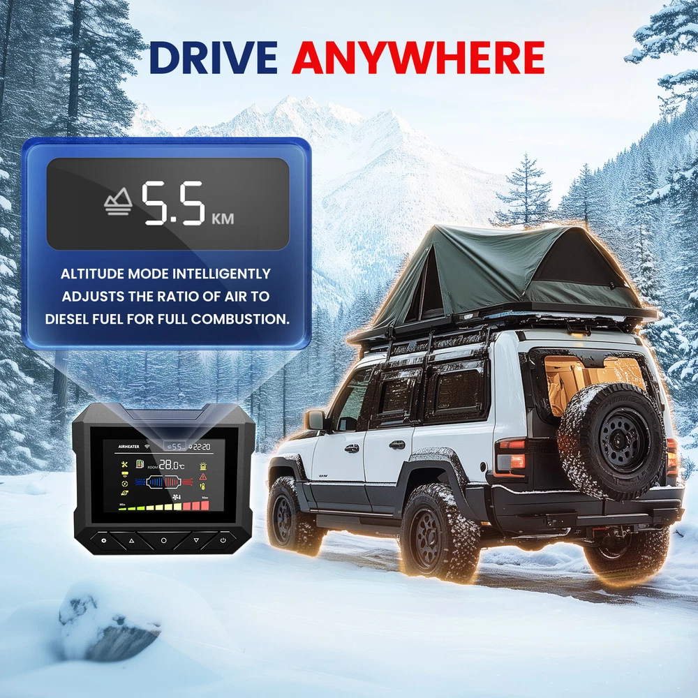 Similar Items Description Product advantages and characteristics: 1. Heating the car/indoor space: Heating the space by outputting warm air through the heat conversion in the combustion chamber of the heater; 2. DC12V-24V, AC 100-240V universal voltage automatic conversion, can be connected to two types of input power sources: AC-DC power adapter/positive and negative electrode battery; 3. temperature (Celsius/Fahrenheit switching) adjustment setting; 4. Timing switch function: start and close according to the set time; 5. Smarter - Download the "airheaterble" App, available for iOS and Android devices, which enables user to remotely control the heater via Bluetooth 6. Small size, space saving, comfortable to carry, portable 7. The built-in fuel tank has no odor, and the oil level scale is marked, making it easy to monitor the oil level and refuel in a timely manner; 8. No installation of intake pipe, fixed air filter at the bottom, easy to install 9. Install exhaust pipes on the side, without the need for bottom padding installation, and can effectively avoid the problem of exhaust pipe blockage 10. The metal buckle opening and closing design is sturdy and sealed, and the fuel tank is completely built-in to prevent odor. It is easy to open and convenient for maintenance and repair. A : Black tool box style Specification: Brand:Hcalory Built-in fuel tank: 5L Rated power: 5~8KW Rated voltage: 12V&110-240V Fuel consumption: 0.1 liters - 0.35 liters / hour Remote control effective distance: 50-100 meters Radiator working temperature: -40~+50°C Operating temperature of oil pump: -40~+40°C Packaged included: 1 x Air Diesel Heater 1 x Remote control 1 x AC power adapter 1 x Silencer 1 x Exhaust pipe 1 set Screw accessory kit 1 x User manual 1 x DC battery power cable B: Black and red horizontal style Specifications: Name Diesel air heater all in one Material metal + plastic Color Black& Red Voltage 12V/24V/110V Power 5KW-8KW Fuel Diesel Complete burn rate 100% Consumption 0.1 - 0.53 L/h Remote controlled effective distance 50-100m Working temperature -40 °c ~ 50 °c Package Included: 1 x Air Heater Host with LCD Display 1 x LCD Remote control 1 x Intake pipe 1 x Air Outlet pipe 1 x Exhaust pipe 1 x Filter 1x Silencer 1x L-type exhaust pipe bracket 4 x Connection holder 1 set Fixture Accessories set 1 x Instructions Note: 1. Please allow 0.5-1cm differences due to manual measurement. 2. Due to the light and screen difference, the item's color may be slightly different from the pictures. #divSKUDetail2 Detail Image Payment 1.We accept Payoneer、PayPal、Mastercard、VISA、Google Pay 、American Express etc. 2.All major credit cards are accepted through secure payment processor. 3.Payment must be received within 7 business days of auction closing. 4.We ship to your eBay or payment address. Please make sure your eBay and payment address is correct before you pay. Shipping 1.We ship to your eBay or Paypal address. Please make sure your eBay and Paypal address is correct before you pay. 2.Items will be shipped within 1-3 business day when we received payment. 3.Delivery time depends on destination and other factors;