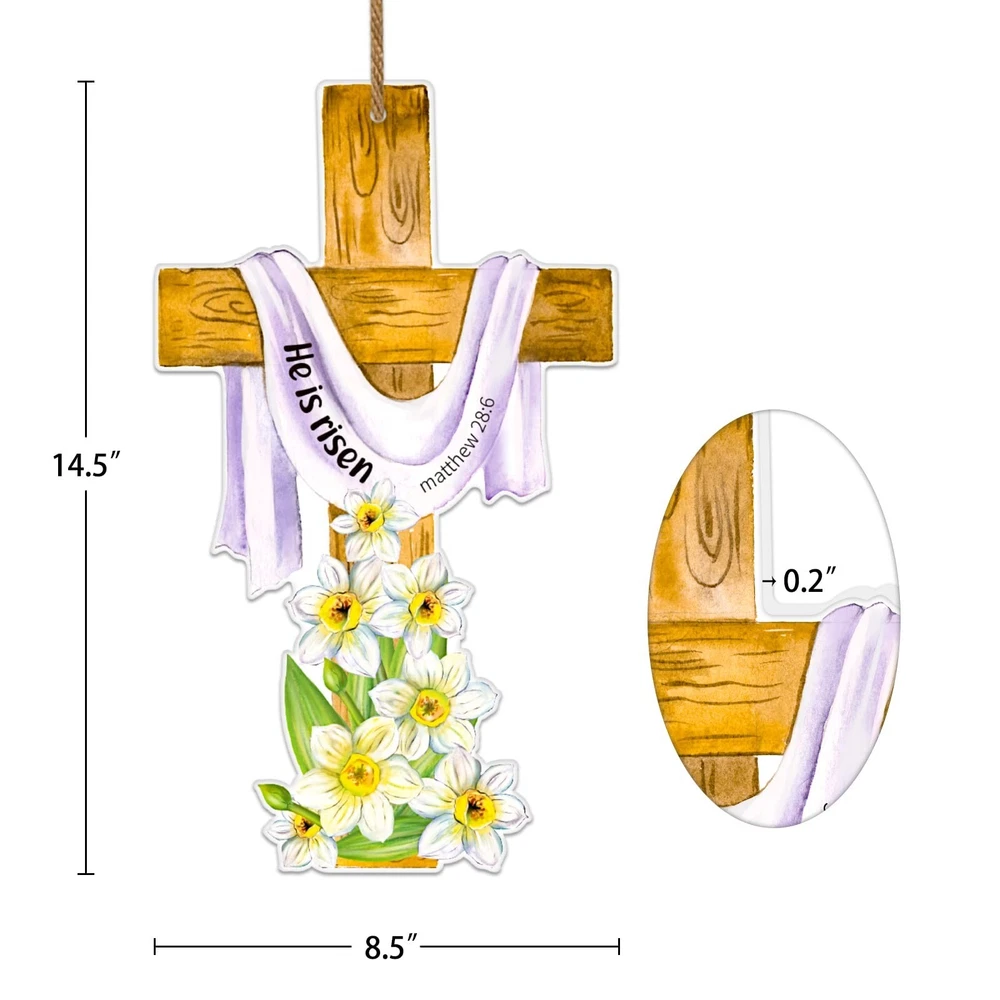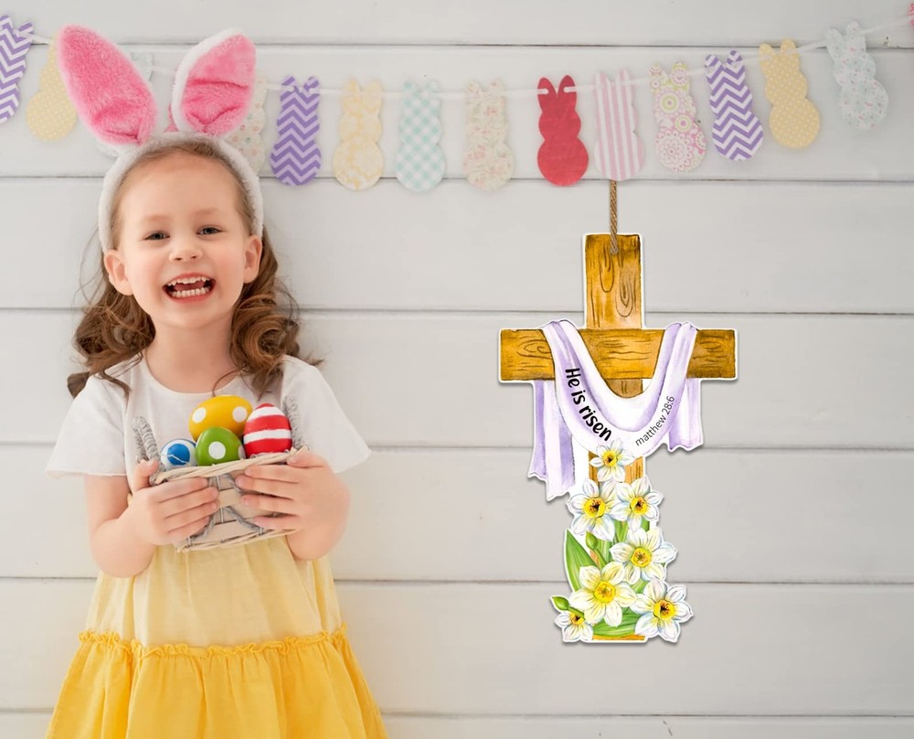 FaCraft He is Risen Door Sign 8.5"x14.5" Religious Easter Door Decorations Easter Cross Hanger Signs for Door Wall Home Indoor Outdoor Spring Decor Product Details Color: E-Lily Brand: FaCraft MPN: Easter Door Sign-2-18 UPC: Does not apply EAN: Does not apply Color: E-Lily Brand: FaCraft Material: Polyvinyl Chloride Theme: Easter,Religious Mounting Type: Door Mount,Wall Mount Product Dimensions: 14.5"L x 8.5"W Shape: Flower Light Type: Neon Style: Farmhouse Item Weight: 3.84 ounces Manufacturer: FaCraft Item model number: Easter Door Sign-2-18 Size: He is risen door signs measure 8.46"x 14.5"x 0.2 Flower Religous Cross Design: The he is risen sign features" a cross of jesus with sprout life",flower is symbolize of life and hope,you can put it on the front door,window,wall,and also add on to a wreath,creat a strong festiver atmosphere for your easter party. Heavy Quality Material: Easter hanger sign made of quality PVC board,safe and harmless,not easy to damage,it can use for a long time. Easy To Hang: Easter door sign with a jute rope,easy to hanging on the door to celebrate Easter or Spring,great for Easter door decoration and Spring decor sign. Easter Decorations: Hang it on your door, wall, window bedroom, kitchen, bathroom, and living room to meet spring coming and commemorate the festival of Christ. FaCraft He is Risen Door Sign Religious Easter Door Decorations Easter Cross Hanger Signs for Door Wall Wreaths Home Farmhouse Indoor Outdoor Spring Decorations