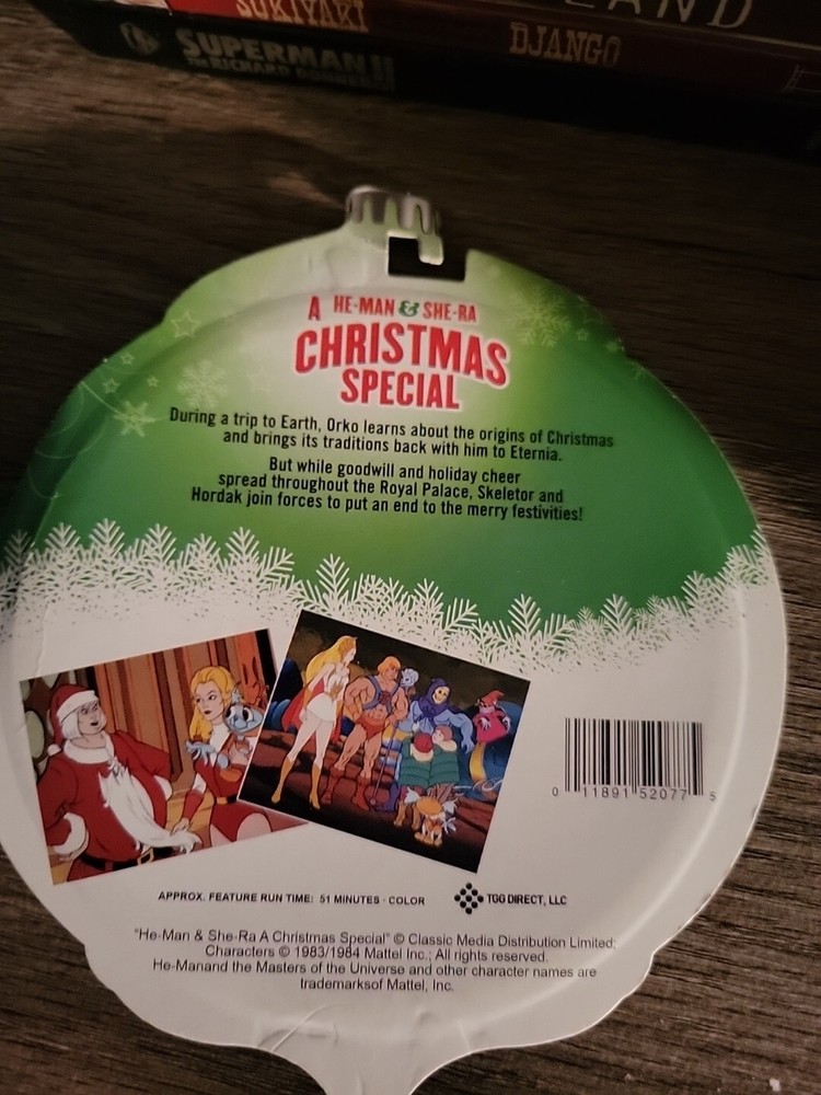 Get ready for the holiday season with the He-Man and She-Ra Christmas Special DVD. This Collector's Edition DVD comes with a special Christmas case and a unique ornament packaging. Join He-Man, She-Ra, and their friends as they team up to save Christmas from the evil Skeletor and Hordak. This action-packed adventure is perfect for fans of superheroes, sci-fi, and fantasy. The DVD is in standard format and has a region code of DVD: 1 (US, Canada...). The movie features an all-star cast including John Erwin, Orko, She-Ra, Skeletor, He-Man, and Hordak. Don't miss out on this B-movie and cult classic.