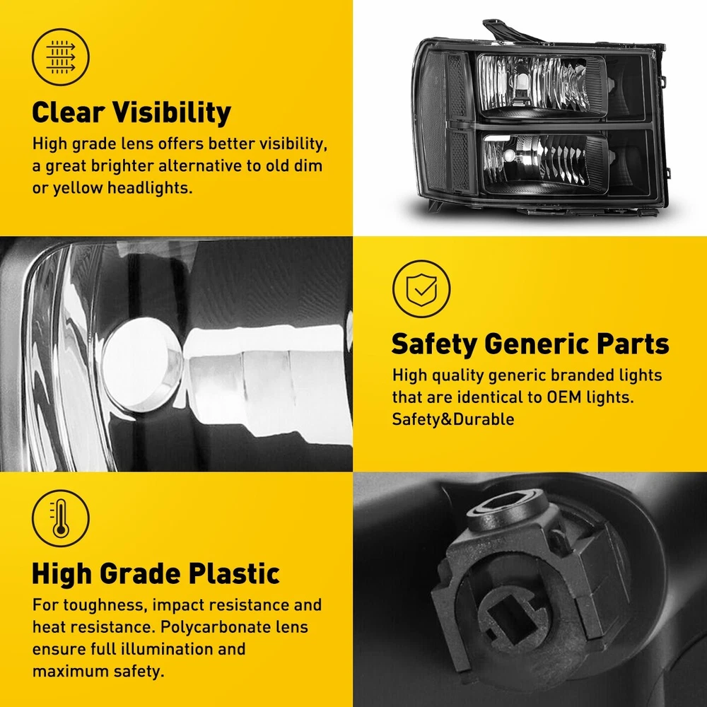 Fit for: 2007-2013 GMC Sierra 1500 2007-2014 GMC Sierra 2500HD / 3500HD SL | SLE | SLT | WT | Denali | XFE Standard Cab | Extended Cab | Crew Cab NOT Compatible with 2007 Classic Models NOT Compatible with 2014 New Body Style Models Specifications: OE number: 22853030, 25799194, 22853029, 25799193 GM2502283, GM2503283 Material: ABS+PC (ABS Plastic Housing/Polycarbonate lens) Appearance color: 1.Housing Color: Black 2.Lens Color: Clear 3.Reflector Color: white Note: Projector × (Not Include) Headlights Assembly For 2007-13 SIERRA GMC 1500 2500HD 3500HD Replacement EXA Fit for: 2007-2013 GMC Sierra 1500 2007-2014 GMC Sierra 2500HD / 3500HD SL | SLE | SLT | WT | Denali | XFE Standard Cab | Extended Cab | Crew Cab NOT Compatible with 2007 Classic Models NOT Compatible with 2014 New Body Style Models Specifications: OE number: 22853030, 25799194, 22853029, 25799193 GM2502283, GM2503283 Material: ABS+PC (ABS Plastic Housing/Polycarbonate lens) Appearance color: 1.Housing Color: Black 2.Lens Color: Clear 3.Reflector Color: white Note: Projector × (Not Include) DRL × (Not Include) Bulb × (Not include) Features: *Easy to install: Direct replacement, drilling and cutting are not required. *Superior quality: Made of ABS and PC materials with toughness and heat resistance functions to ensure its long service life and durability. *Angle adjustment: Equipped with a headlamp Angle adjustment knob, you can adjust the best Angle of view through the knob. *Suggestion: 1.Please confirm the OE number before purchasing!!! 2.Professional installation is required!!! Package Included: Headlights *2 (Left+Right) Item Specifics Brand AUXITO Type Headlight Assembly Placement on Vehicle Front,Left,Right Fitment Type Direct Replacement Items Included Driver Side & Passenger Side OE/OEM Part Number 22853030, 25799194, 22853029, 25799193 Manufacturer Warranty 1 Year Universal Fitment No Number of Pieces 2 Interchange Part Number GM2502283, GM2503283 Items Included Driver Side & Passenger Side OE/OEM Part Number 22853030, 25799194, 22853029, 25799193 Manufacturer Warranty 1 Year Universal Fitment No Number of Pieces 2 Interchange Part Number GM2502283, GM2503283 Payment We only accept PayPal payment, should be received within 3 days from the date of purchase. Please keep the consistency of Paypal address and ebay address. Payment should be made within 4 days once you won a item ,or ebay will launch Unpaid Reminder agaist you and there will be bad record on your ebay account . Buyers are responsible for import duties, custom fees and taxes.Please check with your country's custom office to determine the additional costs before you finally make the purchase Shipping All items will be shipped in 48 hours after receiving your payment . We ship this item to US only via USPS first class mail. It usually takes 3-6 working days to deliver. Returns We offer 30 days return policy. Please contact us within 30 days t from the date you receive your order if you have any issues with the product or want return .Refund will be send after we got your resend package. All returned items should be in the original packaging , return tracking information should be provided .. Buyer is responsible for return shipping cost due to the problem not caused by item quality itself . Contact Us Our office hours are MONDAY - FRIDAY 9:00PM - 6:00PM PST, but we will response you once we get your message .There will be some delay on response if you send message or E-Mail on weekend. FAQ Q1: Will this bulb fit my vehicle? A: We can match almost any vehicle to one of our bulb sizes. eBay only lets us include partial vehicle fitments per listing, but if your vehicle does not show up on the compatibility table at the top of our listings, welcome you to contact us for free consulation before purchasing a product. Q2: My item has not arrived, what's taking so long? A: Sometimes items take longer than expected, especially if it’s going far or to rural area. Check with your post office to see if your item has been held up. Sometimes USPS will not update a tracking number until it has arrived at its destination. If your item still has not arrived after a few days, let us know so we can double check for you and help solve it asap. Q3: Do I need to mention the Year, Make and Model in the notes when place order? A: YES. Please include the Year, Make, and Model in the notes section during checkout to ensure you receive everything needed for your kit! Q4: My bulbs won't fit, help! A: Special bulb holder may be required. See if you can take the holder from the stock bulb. If not, let us know. The bulb size may be wrong, double check the item you received with the item you ordered. Do you have an aftermarket lighting housing? These may not be perfectly fitted for aftermarket bulbs and will require some manual modifications. Q5: Neither side lighting up? Both sides flicker, flash, or work inconsistantly. A:Check the headlight fuses, and then check the ballast plugs to insure correct installation. If this doesn't work, there may be a voltage problem with the vehicle. You probably just need a relay or capacitor. Q6: WARNING ABOUT POLARITY Unlike halogen bulbs, LED are polarity sensitive. BEFORE you start your LED kit installation, verify the polarity on your vehicle by simply plugging the LED bulb into your vehicle socket. - if your light turns on, please proceed to install both bulbs onto your vehicle. - if your light DOES NOT turn on, disconnect the bulb and flip the socket in order to reverse the polarity (this will not damage your vehicle electrical system in any way). Once you made sure the LED bulb turns on, please proceed to install both bulbs onto your vehicle. Note: There is no convention when it comes to polarity. Different car manufactures have different polarity setup, even within the car model the polarity setup on your low beams and high beams might be different. DESCRIPTION PAYMENT SHIPPING RETURN POLICY CONTACT US Shop Category Store Home B3 FANLESS S