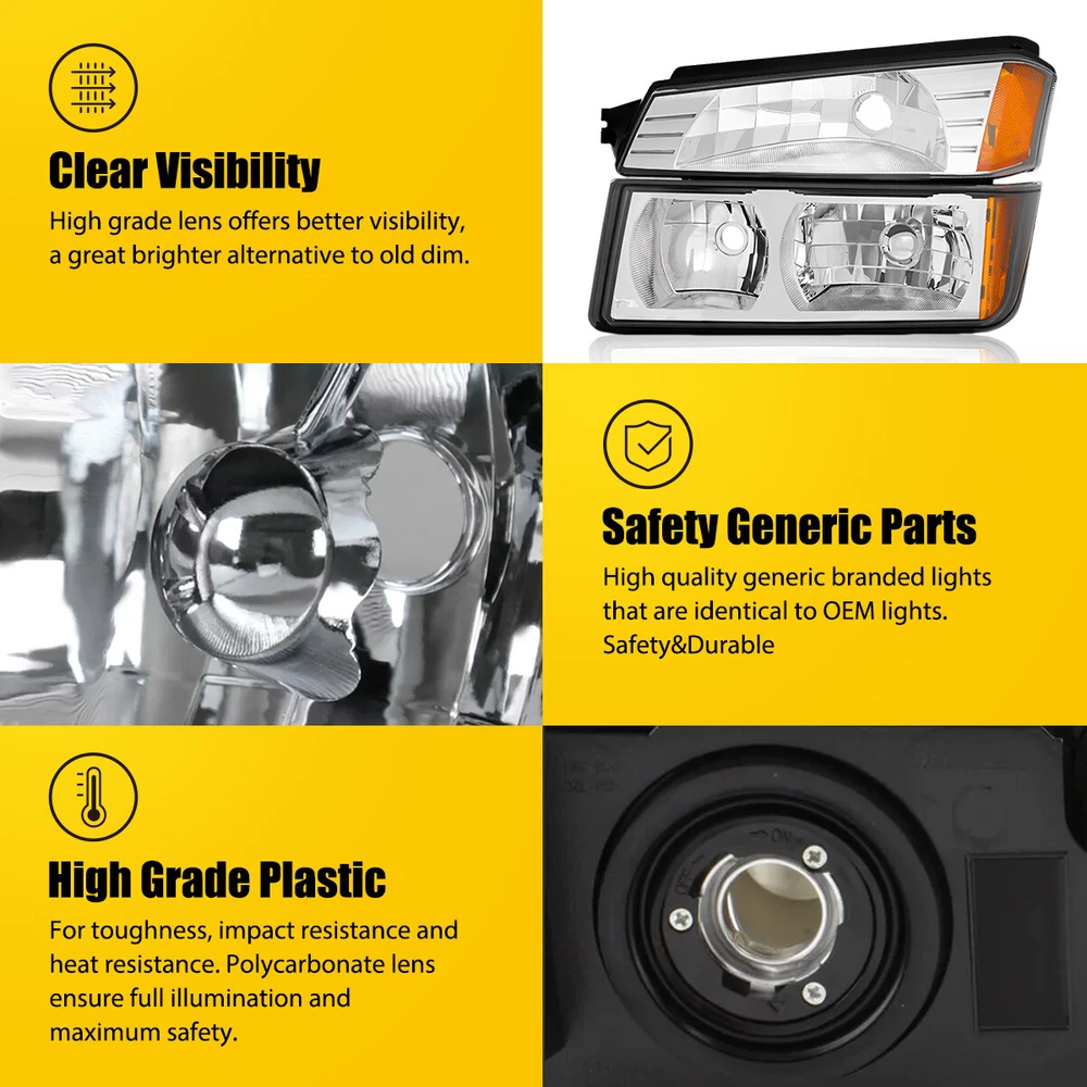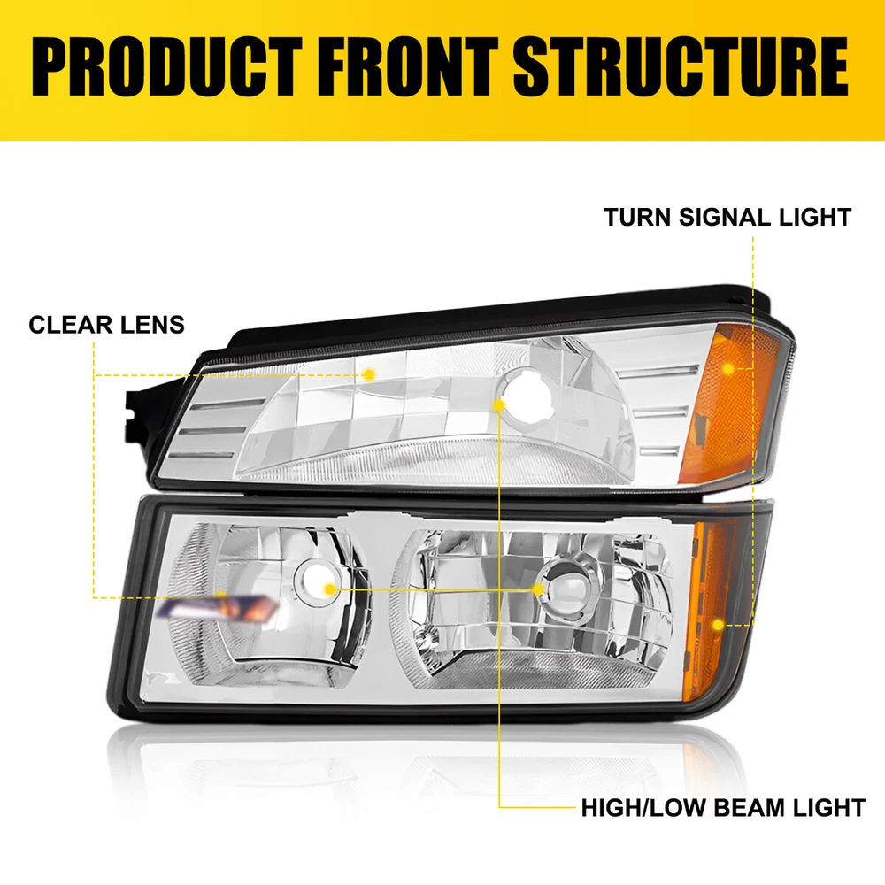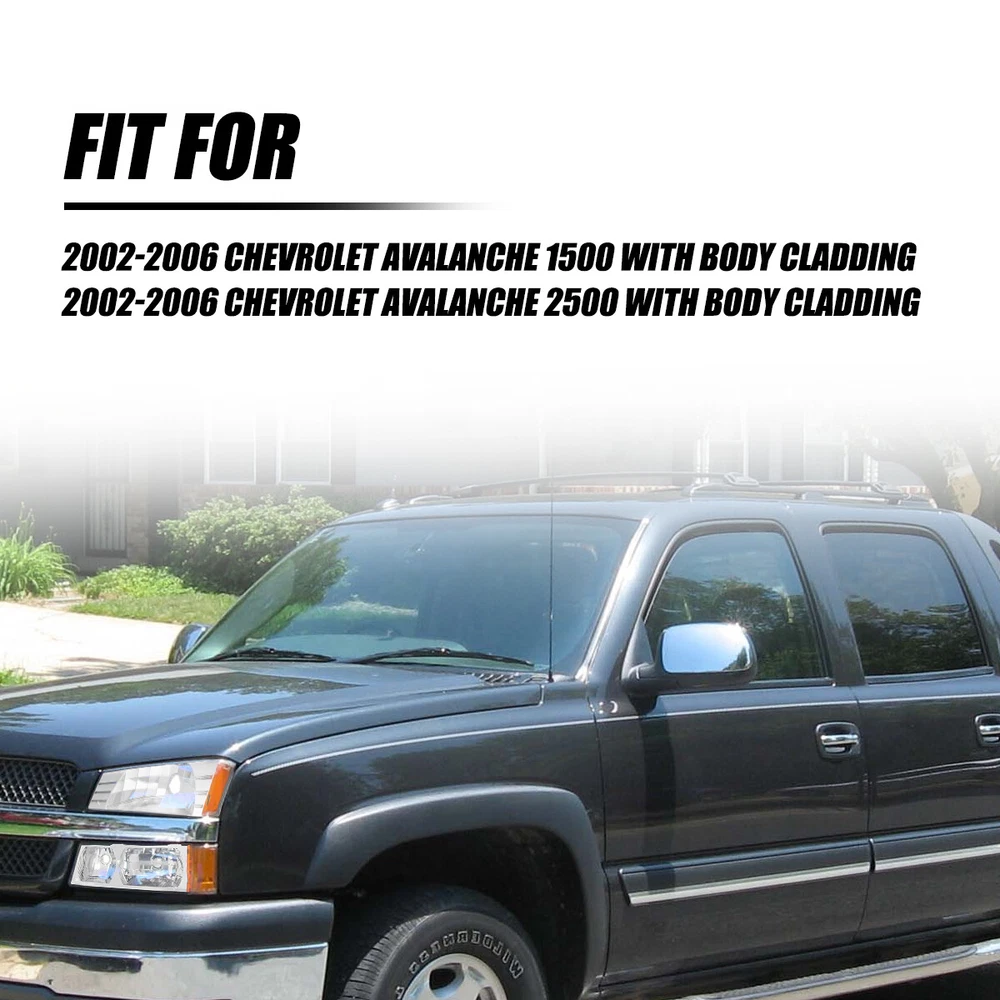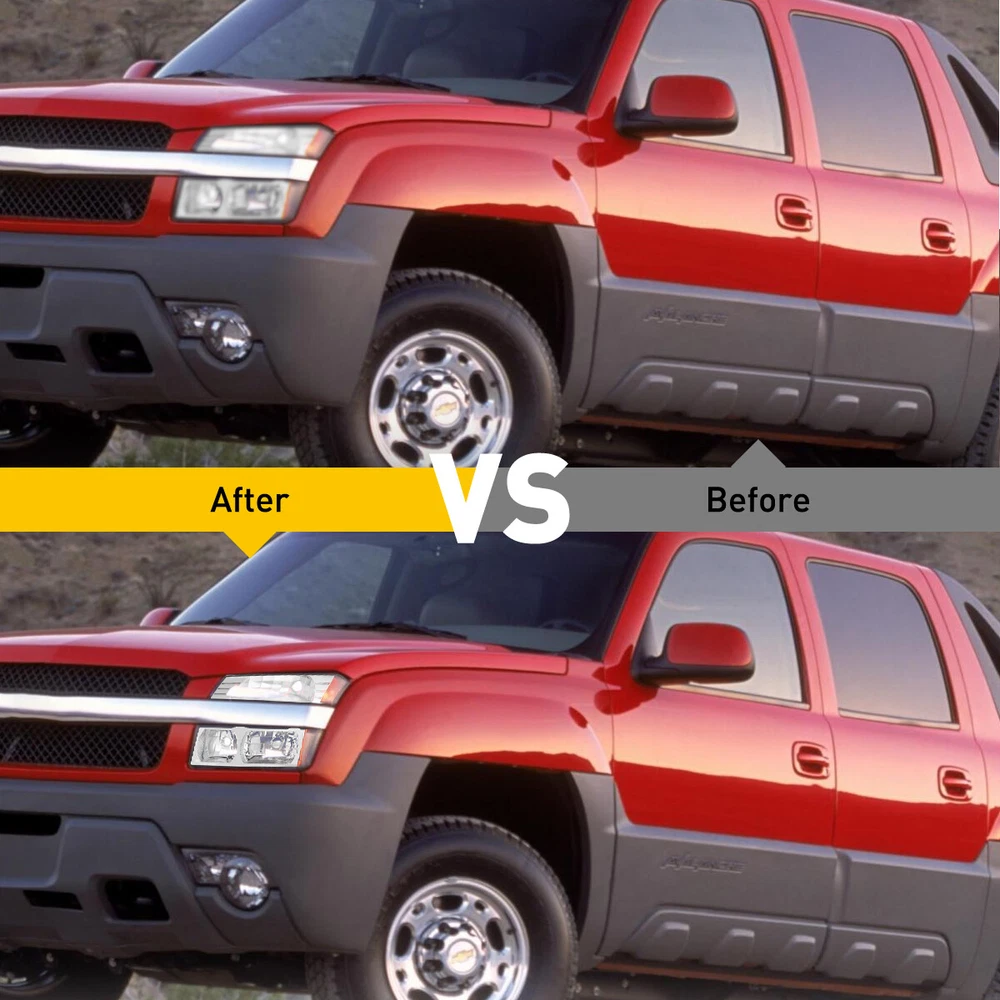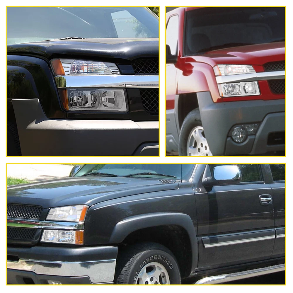 Fit for: 2002-2006 Chevrolet Avalanche 1500 with Body Cladding 2002-2006 Chevrolet Avalanche 2500 with Body Cladding Specifications: OE number: 15136536, 15136537 GM2520184, GM2521184 GM2502219,GM2503219 Material: ABS+PC (ABS Plastic Housing/Polycarbonate lens) Appearance color: 1.Housing Color:Chrome 2.Lens Color:Clear 3.Reflector Color:Amber Note: Projector ×(Not Include) DRL × (Not include) Bulb × (Not include) Features: *Easy to install: Headlights + Bumper Signal Lamp For 2002-2006 Chevy Avalanche Body Cladding Pair Fit for: 2002-2006 Chevrolet Avalanche 1500 with Body Cladding 2002-2006 Chevrolet Avalanche 2500 with Body Cladding Specifications: OE number: 15136536, 15136537 GM2520184, GM2521184 GM2502219,GM2503219 Material: ABS+PC (ABS Plastic Housing/Polycarbonate lens) Appearance color: 1.Housing Color:Chrome 2.Lens Color:Clear 3.Reflector Color:Amber Note: Projector ×(Not Include) DRL × (Not include) Bulb × (Not include) Features: *Easy to install: Direct replacement, drilling and cutting are not required. *Superior quality: Made of ABS and PC materials with toughness and heat resistance functions to ensure its long service life and durability. *Angle adjustment: Equipped with a headlamp Angle adjustment knob, you can adjust the best Angle of view through the knob. *Suggestion: 1.Please confirm the OE number before purchasing!!! 2.Professional installation is required!!! Packaging include: Headlights*2(Left+Right) Item Specifics Brand AUXITO Placement on Vehicle Left Right Front Housing Color Chrome Lens Color Clear Manufacturer Part Number 15136536 15136537 Interchange Part Number GM2520184 GM2521184_2002 2003 2004 2005 2006 California Prop 65 Warning This product contains chemicals known to the State Package Include Diver Side & Passenger Side Attention [Compatible on Models w/ Body Cladding Only] [Headlight] Bulb Reuse Stock Low Beam 9006/ High Beam 9005 Bulbs SAE DOT Compliant Yes Lens Heavy Duty Polycarbonate Dust and Moisture Protection Yes Return Free Return Shipping on damaged or defective items Headlight Style Factory Lighting Technology Halogen Fitment Type Direct Replacement Number of Bulbs 0 Type Headlight Assembly Features Sealed Assembly Bulb Shape Code HB3 (9005) Light Color Clear Bulb Shape Code1 HB4 (9006) OE/OEM Part Number 15136536, 15136537 Manufacturer Warranty 1 Year Superseded Part Number GM2520184, GM2521184 GM2502219,GM2503219 Payment Returns DESCRIPTION PAYMENT SHIPPING RETURN POLICY CONTACT US Shop Category Store Home LED Headlight ◈ H4 ◈ H13 LED Reverse Light ◈ T15/921/W16W LED License Plate Light LED Side Marker Light Car Parts & Accessories Tail Light assemblies Other Hot Item Picture New List Item LED License Plate Tag Light For Lexus IS ES GS RX Toyota Camry Super White PUS USD 12.99 2pcs 9006 Fog Light Driving LED Foglight Bulbs Xenon White High Power 4000LM USD 23.99 Clear Chrome Projector Head Lights Lamp For 2014-2015 Chevy Silverado 1500 LH RH USD 226.99 2x For 2006-2009 Dodge Ram 1500 2500 3500 Chrome Clear Headlights Headlamps New USD 85.99 FOR 06-11 HONDA CIVIC SEDAN HOUSING PAIR BLACK AMBER CORNER HEADLIGHT LAMP USD 69.99 Help & Info Payment Policy Shipping Policy Return Policy FAQ About Us Headlights + Bumper Signal Lamp For 2002-2006 Chevy Avalanche Body Cladding Pair Fit for: 2002-2006 Chevrolet Avalanche 1500 with Body Cladding 2002-2006 Chevrolet Avalanche 2500 with Body Cladding Specifications: OE number: 15136536, 15136537 GM2520184, GM2521184 GM2502219,GM2503219 Material: ABS+PC (ABS Plastic Housing/Polycarbonate lens) Appearance color: 1.Housing Color:Chrome 2.Lens Color:Clear 3.Reflector Color:Amber Note: Projector ×(Not Include) DRL × (Not include) Bulb × (Not include) Features: *Easy to install: Direct replacement, drilling and cutting are not required. *Superior quality: Made of ABS and PC materials with toughness and heat resistance functions to ensure its long service life and durability. *Angle adjustment: Equipped with a headlamp Angle adjustment knob, you can adjust the best Angle of view through the knob. *Suggestion: 1.Please confirm the OE number before purchasing!!! 2.Professional installation is required!!! Packaging include: Headlights*2(Left+Right) Payment Returns All rights reserved. On Dec 17, 2024 at 11:49:33 PST, seller added the following information: