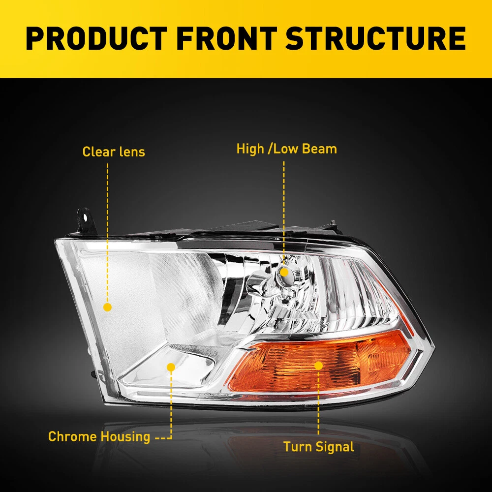 Fit for: 2009-2012 Dodge Ram 1500 2010-2012 Dodge Ram 2500 3500 Compatible with Dual Beam Models Not Compatible with Factory Projector Headlight Models or Quad Beam Headlight Models Specifications: OE number: 55277409AD,55277409AF,55277409AG,5277409AD CH2502217,CH2503217 2221-0090L,2221-0090R Material: ABS+PC (ABS Plastic Housing/Polycarbonate lens) Appearance color: 1.Housing Color: Chrome 2.Lens Color??Clear 3.Reflector Color??Amber The bulb type of original car: 1.Low beam: H13 2.High beam: H13 3.Turn signal light: 3157A Note: Headlights For 2009-2012 Dodge Ram 1500 2500 3500 Chrome Clear Head Lamp 2SE EXA Fit for: 2009-2012 Dodge Ram 1500 2010-2012 Dodge Ram 2500 3500 Compatible with Dual Beam Models Not Compatible with Factory Projector Headlight Models or Quad Beam Headlight Models Specifications: OE number: 55277409AD,55277409AF,55277409AG,5277409AD CH2502217,CH2503217 2221-0090L,2221-0090R Material: ABS+PC (ABS Plastic Housing/Polycarbonate lens) Appearance color: 1.Housing Color: Chrome 2.Lens Color??Clear 3.Reflector Color??Amber The bulb type of original car: 1.Low beam: H13 2.High beam: H13 3.Turn signal light: 3157A Note: Projector ×??Not include?? DRL × (Not include) Bulb × (Not include) Features: *Easy to install: Direct replacement, drilling and cutting are not required. *Superior quality: Made of ABS and PC materials with toughness and heat resistance functions to ensure its long service life and durability. *Angle adjustment: Equipped with a headlamp Angle adjustment knob, you can adjust the best Angle of view through the knob. *Suggestion: 1.Please confirm the OE number before purchasing!!! 2.Professional installation is required!!! Packaging include: Headlights*2(Left+Right) Item Specifics Brand AUXITO Lighting Technology Halogen Type Headlight Assembly Features Custom Headlights Factory Headlights Halo Headlights Housing Color Chrome (Crystal) Placement on Vehicle Front Left Right Lens Color Clear Bulb Shape Code H13 (9008) OE/OEM Part Number 55277409AD,55277409AF,55277409AG,5277409AD,5527740 Interchange Part Number 2221-0090L,2221-0090R Manufacturer Warranty 5 Year California Prop 65 Warning This product can expose you tochemicals including dehp, which are known to the State of California to cause cancer and birth defects or other reproductive harm. Headlight Style Factory Fitment Type Direct Replacement Other Part Number CH2502217,CH2503217 High&Low Beam Bulb Type H13(Bulbs are not included) Fitment ① For 2009-2012 Dodge Ram 1500 Fitment ② For 2010-2012 Dodge Ram 2500 3500 Note 1 Compatible w/ Dual Beam Models Note 2 Not Compatible w/ Factory Projector Headlight Models Note 3 Not Compatible w/ Quad Beam Headlight Models Universal Fitment No Payment We only accept PayPal payment, should be received within 3 days from the date of purchase. Please keep the consistency of Paypal address and ebay address. Payment should be made within 4 days once you won a item ,or ebay will launch Unpaid Reminder agaist you and there will be bad record on your ebay account . Buyers are responsible for import duties, custom fees and taxes.Please check with your country's custom office to determine the additional costs before you finally make the purchase Shipping All items will be shipped in 48 hours after receiving your payment . We ship this item to US only via USPS first class mail. It usually takes 3-6 working days to deliver. Returns We offer 30 days return policy. Please contact us within 30 days t from the date you receive your order if you have any issues with the product or want return .Refund will be send after we got your resend package. All returned items should be in the original packaging , return tracking information should be provided .. Buyer is responsible for return shipping cost due to the problem not caused by item quality itself . Contact Us Our office hours are MONDAY - FRIDAY 9:00PM - 6:00PM PST, but we will response you once we get your message .There will be some delay on response if you send message or E-Mail on weekend. FAQ Q1: Will this bulb fit my vehicle? A: We can match almost any vehicle to one of our bulb sizes. eBay only lets us include partial vehicle fitments per listing, but if your vehicle does not show up on the compatibility table at the top of our listings, welcome you to contact us for free consulation before purchasing a product. Q2: My item has not arrived, what's taking so long? A: Sometimes items take longer than expected, especially if it’s going far or to rural area. Check with your post office to see if your item has been held up. Sometimes USPS will not update a tracking number until it has arrived at its destination. If your item still has not arrived after a few days, let us know so we can double check for you and help solve it asap. Q3: Do I need to mention the Year, Make and Model in the notes when place order? A: YES. Please include the Year, Make, and Model in the notes section during checkout to ensure you receive everything needed for your kit! Q4: My bulbs won't fit, help! A: Special bulb holder may be required. See if you can take the holder from the stock bulb. If not, let us know. The bulb size may be wrong, double check the item you received with the item you ordered. Do you have an aftermarket lighting housing? These may not be perfectly fitted for aftermarket bulbs and will require some manual modifications. Q5: Neither side lighting up? Both sides flicker, flash, or work inconsistantly. A:Check the headlight fuses, and then check the ballast plugs to insure correct installation. If this doesn't work, there may be a voltage problem with the vehicle. You probably just need a relay or capacitor. Q6: WARNING ABOUT POLARITY Unlike halogen bulbs, LED are polarity sensitive. BEFORE you start your LED kit installation, verify the polarity on your vehicle by simply plugging the LED bulb into your vehicle socket. - if your light turns on, please proceed to install both bulbs onto your vehicle. - if your light DOES NOT tur