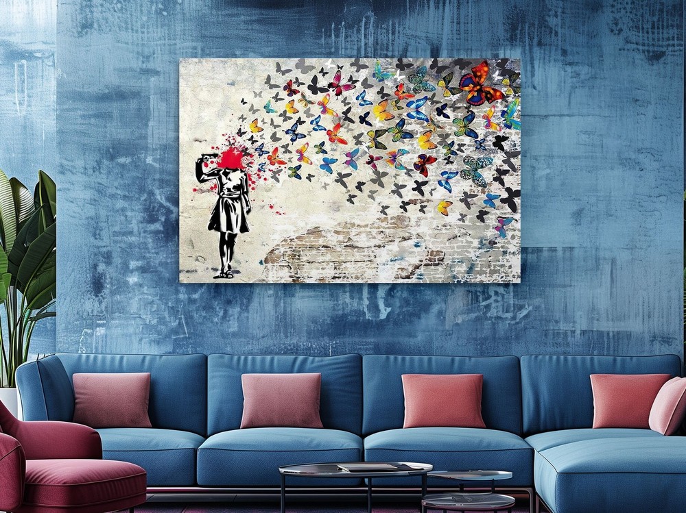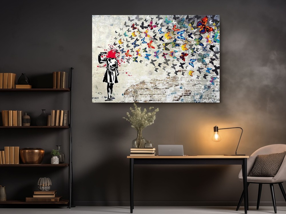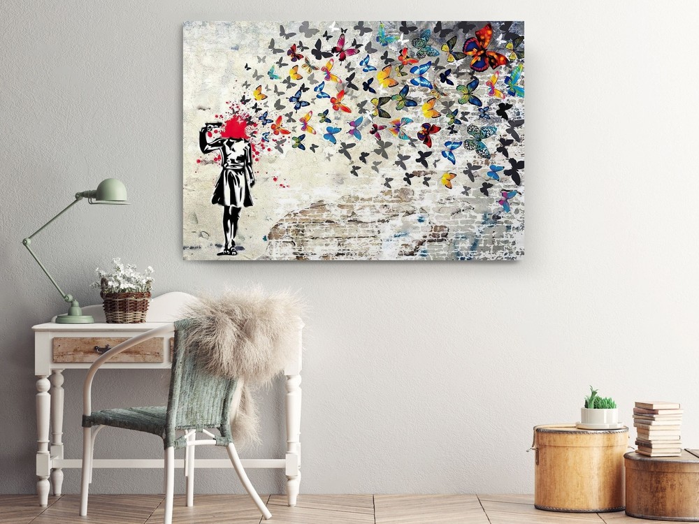 Headshot Butterfly Girl by Banksy - Home Decor Street Art Ready to Hang Canvas