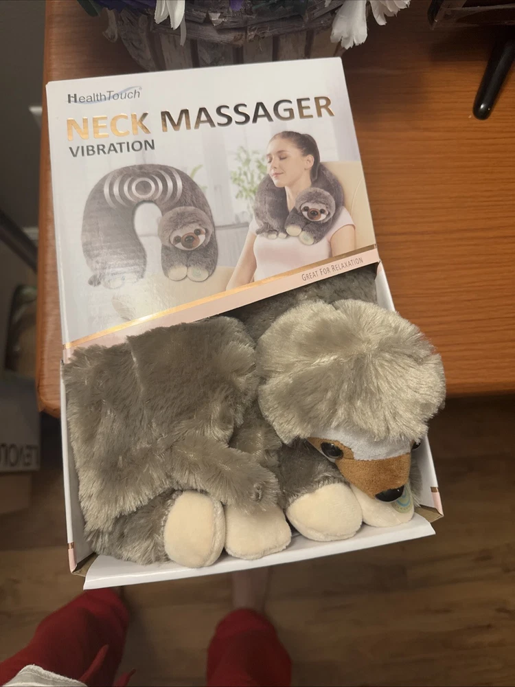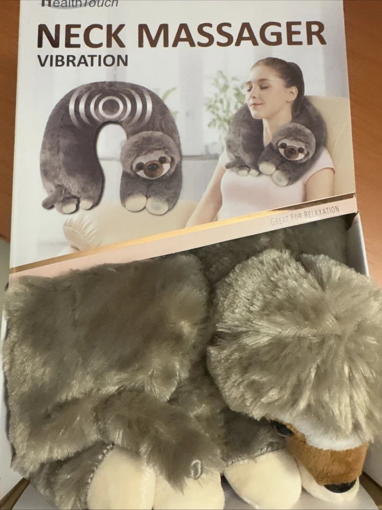 Health Touch Plush Vibrating SLOTH Neck Massager with Relaxing Vibration NEW