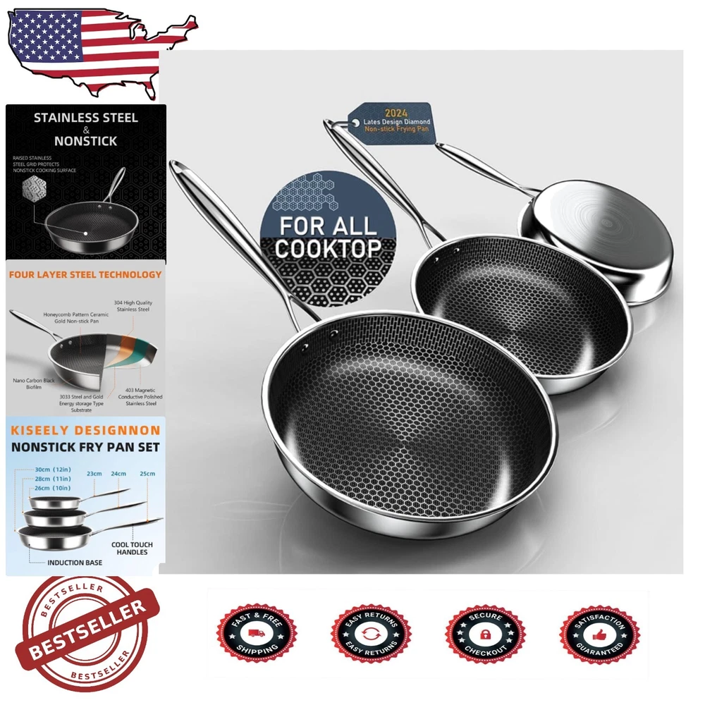 Healthy Honeycomb Nonstick Frying Skillet Set - 10", 11", 12" Sizes Included ‹ › ‹ › ‹ › ‹ › ‹ › ‹ › ‹ › ‹ › Healthy Honeycomb Nonstick Frying Skillet Set - Includes 10", 11", and 12" sizes Key Features: 2024 Honeycomb Nonstick Technology: Experience the latest in cooking advancement with combined honeycomb raised technology and full-coverage non-stick coating, ensuring no foods stick for effortless cooking and cleaning. Versatile Frying Pan Set: This set includes three essential skillet sizes (10", 11", and 12") perfect for a variety of cooking needs—whether you’re sliding off eggs, sautéing vegetables, or flipping pancakes. High Compatibility: Suitable for all cooking methods, including deep-frying, steaming, boiling, grilling, and more. Compatible with any cooktop, including induction, halogen, gas, ceramic, and electric stoves. Health-Conscious Design: Crafted from non-toxic materials, this skillet set is completely free from harmful substances such as PFAS and PFOA, allowing you to cook with confidence. Quality Assurance: Each product undergoes strict multi-inspection processes. Should you receive a defective item or encounter issues during use, customer satisfaction is guaranteed with a 100% refund or replacement. Why Choose Our Healthy Honeycomb Nonstick Frying Skillet Set? Elevate your culinary experience with the Healthy Honeycomb Nonstick Frying Skillet Set. Designed to meet the demands of the modern kitchen, this premium frying pan set combines innovative technology with health-conscious materials. The dual surface allows you to cook with less oil, leading to healthier meals without sacrificing flavor! Imagine searing, sautéing, or grilling to perfection, whether using it on the stovetop, in the oven, or even on the grill or campfire. This versatile set is your ultimate kitchen companion, ensuring a delightful cooking experience every time! Indulge in high-quality cooking at home—order your set today and unlock a world of culinary possibilities! Shipping Free & Fast Shipping - We offer free shipping to most of the USA with a normal delivery time of 3-7 days. However, due to the current situation, additional delivery time (up to 3 weeks) may be required for some items. Alternative Carriers - We may use alternative carriers (e.g. USPS, FedEx, UPS, etc.) to ensure your package arrives safely and on time. Due to the use of multiple carriers, we are unable to provide a tracking number automatically. Handling Time - Orders are processed and shipped within 1-2 business days of receiving cleared payment. Shipping Restrictions - Shipping to Alaska, Hawaii, Puerto Rico, Guam, and other US territories may incur shipping charges or delivery restrictions. Please contact us before ordering, or your order can be refunded/cancelled. State Restrictions - There may be restrictions based on your state of purchase. For example, certain items may not be shipped to California due to state regulations. Contact for Tracking Updates - If you require tracking updates or have any concerns about the delivery of your order, please feel free to contact us, and we will be happy to assist you. Return 30-Day Hassle-Free Returns - We want you to be completely satisfied with your purchase. If you are not, you can return the item within 30 days of receiving it for a full refund or exchange. Easy Return Process - To start a return, simply contact us and we will provide you with a prepaid return shipping label and detailed instructions. Restocking Fee - There are no restocking fees for returns. However, the buyer is responsible for return shipping costs if the return is not due to a seller's error. Refund Processing Time - Refunds will be processed within 5 business days of receiving the returned item in its original condition. Payment We accept all major credit cards, PayPal, and Apple Pay for your convenience. Your payment information is secure and encrypted to ensure a safe and seamless transaction. Please complete your payment within 3 days of purchase to avoid any delays in shipping. Feedback Your feedback is extremely important to us. We strive to provide the best products and customer service possible. If you are satisfied with your purchase, please take a moment to leave us a positive review. If you have any concerns or issues with your order, please contact us before leaving negative feedback. We are committed to resolving any problems and ensuring your satisfaction. Contact Us If you have any questions or concerns, please feel free to reach out to our customer support team. You can contact us through the eBay messaging system. We are available Monday to Friday, 9:00 am to 5:00 pm EST, and we will do our best to respond to your inquiry within 24 hours. Buy it now and enjoy a pleasant shopping experience! UPC: Not Set Unit Quantity: 3-Piece Stove Type Compatibility: Electric,Gas,Induction,Halogen,Ceramic Material: Stainless Steel,Non-Toxic Coating Features: Dishwasher Safe,Non-Stick,Oven-Safe,Honeycomb Technology,Stay-Cool Handle Set Includes: Frying Pan,10 in Frying Pan,11 in Frying Pan,12 in Frying Pan Type of Oven: Electric,Gas,Induction,Oven Brand: Unbranded Surface Coating: Non-Stick Color: KJ1 Type: Frying Pan Set Item Length: 10 in Item Width: 10 in Item Diameter: 10 in MPN: Not Set Country/Region of Manufacture: Not Set Number of Items in Set: Three-Piece Shape: Round Item Height: 12 in Manufacturer Warranty: Not Set Item Depth: 2 in Heat Resistance: Up to 500°F Model: Not Set Item Weight: 3.25 lb Unit Type: lb