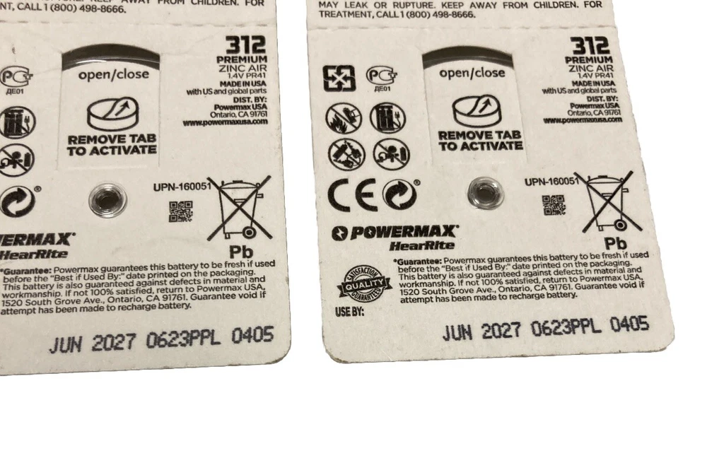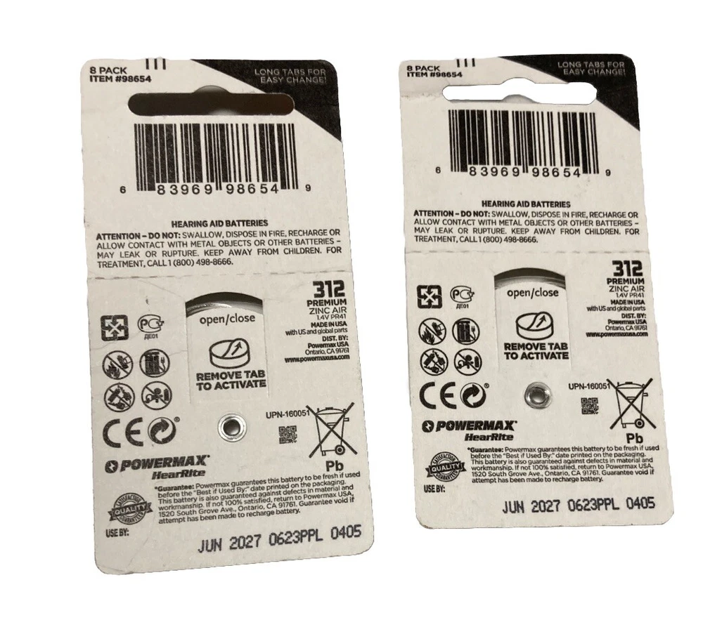 This hearing aid battery is the perfect replacement for your PowerMax model 312 battery. With an expiration date of June 2027, you can be assured of its long-lasting use. This coin cell/button battery has a voltage of 1.4v and an amp hours of 1 Ah, making it suitable for low drain devices. The battery is made of zinc-air chemical composition and comes in a unit quantity of 2. Manufactured in the United States, this battery is reliable and durable. Additionally, it comes with a 1-year manufacturer warranty. Get your hands on this high-quality hearing aid battery and enjoy its benefits for a long time to come.
