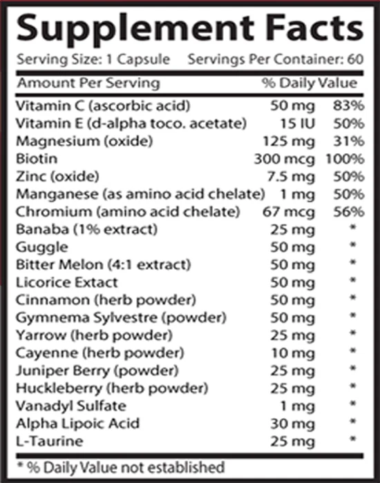 BLOOD SUGAR SUPPORT COMPLEX Manufactured For Health Solution Prime 3 Bottles 180 Capsules Made in USA Blood Sugar Support potential Benefits: Support healthy blood glucose levels, both before and after meals Manage insulin function Support healthy glucose disposal and metabolism Help maintain healthy cholesterol levels Help support healthy detoxification function Promote healthy hemoglobin A1C levels Promote healthy insulin function Support healthy insulin sensitivity Why Blood Sugar Matters Getting your blood glucose levels under control has immediate health benefits – you will feel better, find it easier to maintain a healthier weight, have more energy, put less strain on your joints, and maintain healthier cholesterol and blood pressure levels. Natural supplements can be a powerful ally in helping you get your blood sugar levels in balance, and keeping them there. And they help you avoid some of the unhealthy side effects that can come with traditional remedies. Besides Blood Sugar Support Complex - exercising, adopting healthier food choices and losing weight are the first steps in controlling your glucose levels. Benefits of the main Blood Sugar Support Complex Ingredients: VITAMIN C Vitamin C, or Ascorbic acid, is one of the most effective and safest nutrients. It is a water soluble vitamin. It is a powerful antioxidant for the synthesis of collagen, which helps to make blood vessels and body muscles strong. The human body doesn’t have the capacity to generate Vitamin C. Therefore, it needs to be received through food and other supplements. Health Benefits Of Vitamin C: - Supports of blood sugar level: One of the chief reasons sugar related blood problems is low levels of vitamin C. Supplements of vitamin C are beneficial for this problem, as they may help in the processing of insulin and glucose - Supports from the weakening of connective tissues, bones, and blood vessels that include collagen. Vitamin C, a powerful antioxidant, is required for the production of collagen - Supports of the immune system of our body - Facilitates the absorption of iron and therefore strengthens the body’s resistance to infection - Lowering hypertension: People with hypertension are at a high risk of developing cardiovascular problems. The supplement of vitamin C intake helps in lowering the body’s blood pressure - Cares of vasodilation: vitamin C has effectively resulted in the proper dilation of blood vessels in the cases of atherosclerosis, congestive heart failure, high cholesterol, angina pectoris, and high blood pressure. Results have been found that supplements of vitamin C may improve blood vessel dilation and protect cardiovascular health - Assisting Eye Disorder: decrease in the level of vitamin C in the lens of the human eye has been found more commonly when problems are present. An increase of vitamin C intake increases the blood supply to the ocular areas of the body - Combating Stroke: Vitamin C also may help in reducing the risk of stroke, a type of cardiovascular problem. A diet full of vegetables and fruits supplies a good quantity of vitamin C, which maintains the appropriate blood pressure level. It also may secure the body from free radicals which could be the reason for the stroke - Mood: Vitamin C plays a key role in the production of neurotransmitters, like norepinephrine. They affect the mood of a person, and they are critical to the proper functioning of the brain - Immunity: Immunity is another important benefit of this vitamin. Vitamin C is widely known for its contribution to the immune system of the body and its stimulation of white blood vessels - Wound Repair: Vitamin C also may help to repair wounds. It facilitates the growth of the connective tissues, which speeds up the process of healing wounds - It helps to protect against the harmful effects of pollution in the human body, which often results in breath-like symptoms - Heart problems: Adequate amounts of vitamin C is essential for the protection of blood vessels from the damage that free radicals can cause them. This could be a major cause of a heart problem called atherosclerosis. Vitamin C acts as a positive agent of this and various other cardiac problems VITAMIN E Vitamin E, the body’s premier fat-soluble antioxidant, improves glucose control and blood vessels and nerves from free-radical damage. Approximately 40 percent of people living with blood sugar disorder have a gene variation (haptoglobin (Hp) 2-2 gene) that increases oxidative stress and doubles or triples their risk of cardiovascular problems. Israeli researchers found that when these people took 400 IU of vitamin E daily, their risk of cardiovascular events such as stroke, heart attack, and death fell by 50 percent! Oxidative stress also contributes to liver damage that, if untreated, can lead to blood sugar disorder complications such as nonalcoholic fatty liver. The best-studied antioxidant for this problem also happens to be vitamin E, with doses averaging 800 IU per day. Everyone, regardless of health status, should take 400 IU of vitamin E every day. Note: Take only natural vitamin E. You can tell it’s natural if it’s listed as d-alpha-tocopherol or d-alpha-tocopheryl. Synthetic vitamin E is listed as dl-alphatocopherol or dl-alpha tocopheryl (note the “l”). MAGNESIUM - May help your immune system out with a little magnesium - Bacteria and germs in the gut can be regulated with magnesium use - Your muscles and nerves function better with magnesium - Control inflammation in the body - Assistance to prevent from affecting your bones - May contribute to Blood pressure reduction - Prevent toxins from affecting and harming you - Restore your daily energy levels - May Help manage your blood sugar level - Improve flexibility in your body - Improve the strength of your teeth - Secures from heart attack. With heart disorder affecting millions of adults in the world, magnesium supplementation can help prevent fatal conditions from getti