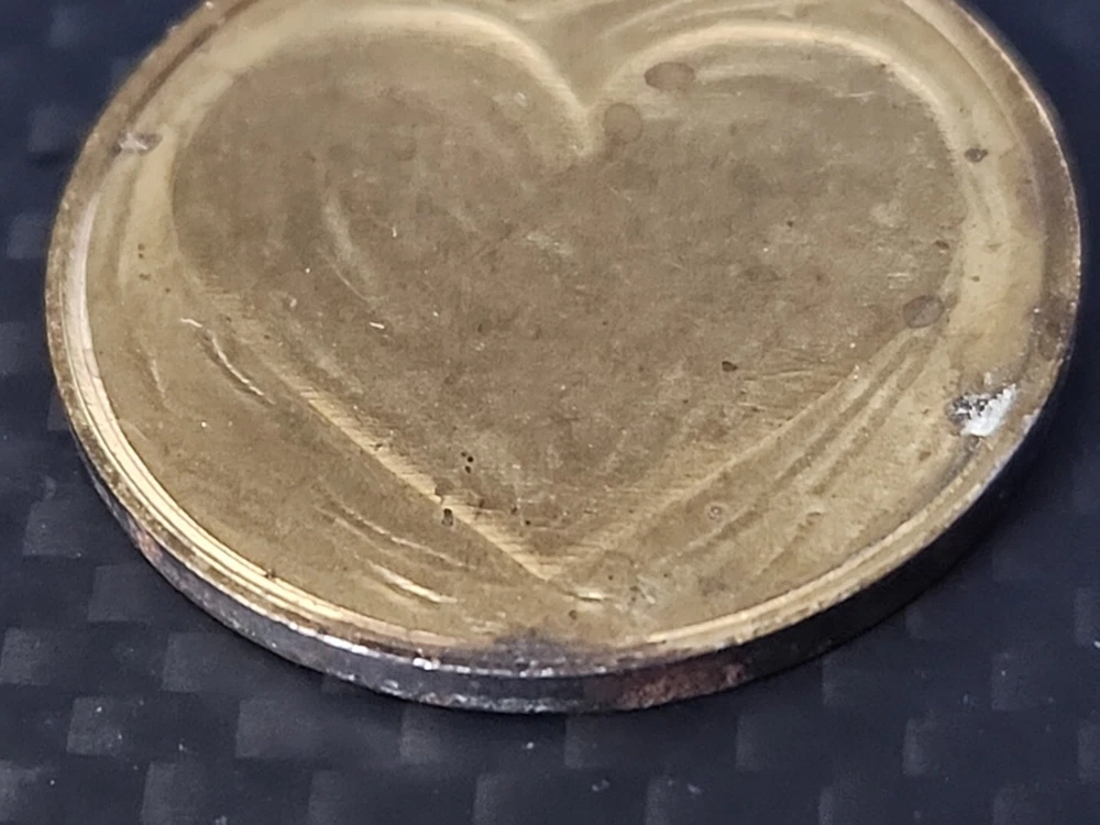 This unique token coin is a must-have for any collector. Crafted from brass, it features a stunning heat love design that is sure to impress. The coin is 1" in size and has been circulated, adding to its charm and character. Its composition and country of manufacture are unknown, adding to the mystery and intrigue of this piece. Perfect for adding to your collection or for use in heat love rituals, this token coin is a rare and valuable find.