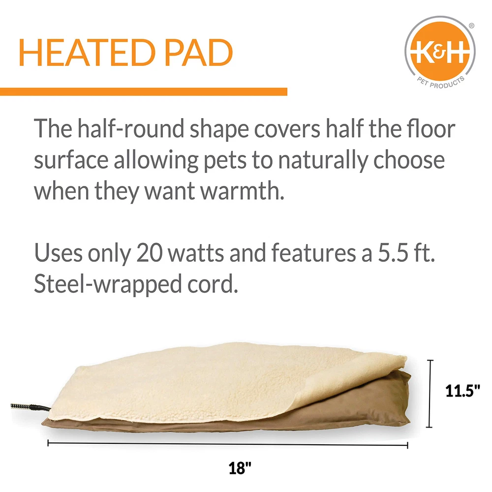 The Lectro-Soft Igloo Style Heated Dog Bed is the first soft, outdoor Igloo style heated bed on the market! The Lectro-Soft Igloo Style Heated Dog Bed is available in multiple sizes and is extremely low wattage. Half-moon shape is designed specifically to fit inside igloo and indigo round style cat and dog houses perfectly. This outdoor heated dog bed is also perfect for outdoor cat houses, doghouses, basements, garages, barns, sheds, porches, or any other outdoor shelter. This soft, orthopedic bed is unique in that it will still provide soft, comfortable warmth even in sub-zero weather! Super soft PVC is used on the exterior to ensure the bed doesn't absorb water and stay wet like a fabric bed would. Indoor or Outdoor use. This heated dog pad has been tested & certified by MET Labs to exceed USA/CA electrical safety standards. K&H doesn't just use safety listed parts; we safety certify the entire product. Designed by K&H with OVER 20 years of experience in creating safe, innovative, quality products for pets and includes a -year limited . OUTDOOR WARMTH: Outdoor heated cat bed with soft orthopedic foam base and includes free soft washable fleece cover AUTOMATIC: Thermostatically controlled to automatically respond to temperature changes to warm to your pet's normal body temperature ROUND HOUSES: Half-moon shape fits into round houses and is also the ideal waterproof outdoor warming cat bed for sheds, garages, barns, or any sheltered area your outdoor cat hang out EFFICIENCY: This 11.5" X 18” heated cat pad features a 5-½ feet steel wrapped cord and uses only 20 watts of power SAFETY: We don't just use safety listed parts; we safety certify the entire product. This outdoor heated pad has been tested & certified by MET Labs and exceeds USA/CA electrical safety standards BRAND YOU TRUST: Designed by K&H with OVER 20 years of experience in creating safe, innovative, quality products for pets