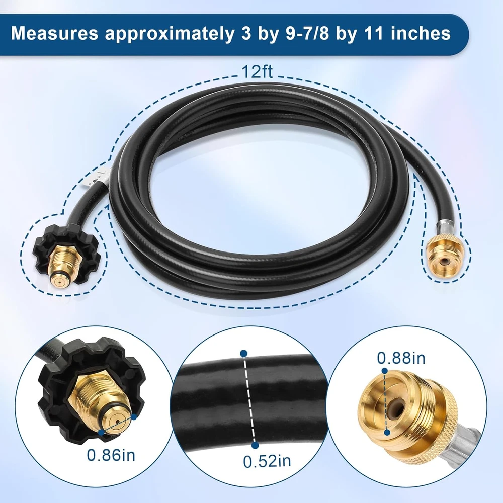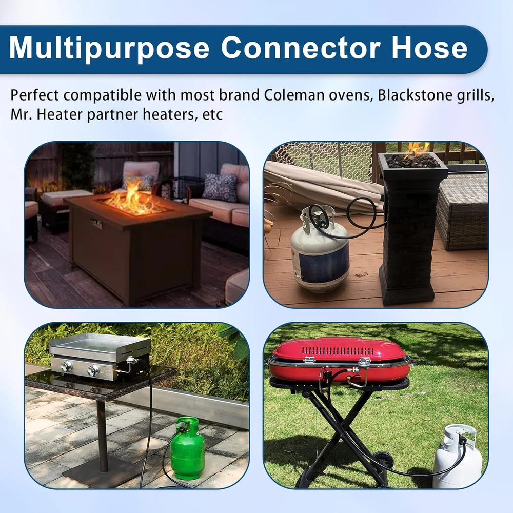 Store New Arrivals Add to Favorite View Feedback Contact Heater Hose12-Ft Propane Assembly Compatible with Mr.Heater/Big Buddy Adapter Description Item model number Propane Hose Assembly Color 12ft Material Brass, Rubber Country of Origin China Item Weight 1.55 pounds Item Length 12 Feet Product Dimensions 144"L x 1"W Propane Adapter Hose Compatibility: F273704 propane hose fit for Mr. Heater Mr Buddy series, 12-foot propane hose with adapter fittings assembly compatible with Mr.Heater MH9B Portable Buddy and MH18B Big Buddy,Blackstone griddle,Coleman camping stove and more. Propane hose adapter 1lb to 20lb",and compatible with more heater equipment and propane tanks Propane Tank Hose Adapter: Replacement for Mr Heater adapter hoses parts are widely used for 1 lb propane tanks to 5-20 lb propane tanks and equipment,also available for more types of propane tanks,ideal for lanterns, gas grills, heaters, cookers, camping stoves,and fire pit tables,portable grills,camping,tailgating,tabletop grills,heating or outdoor picnics and more propane equipment,and so on Easy to Install: POL connection attaches directly to propane tank without needing any tools. The end swivels of the hose are easily tightened by hand, simply hand-tighten the swivel ends to secure it, can be directly connected onto the RV’s low-pressure propane supply, make sure both ends are tightened for safe and reliable usage Safe and Reliable: ChangTa heater adapter hose is CSA certified as safe and reliable, provide a safe, gas-tight connection between the heater and the tank with no gas leakage to ensure the safety of users of the heater, no regulator or gas problems, and the airflow is kept stable and at an appropriate level Excellent Material: 12-ft propane stove hose extension is made of high-quality rubber, leak-proof, explosion-proof, wear-resistant, corrosion-resistant; Propane stove adapter hose connector sections crafted from solid brass, provides secure connection between appliance and tank, durability, and safe, leak-free operation Please Note: This is a non-OEM product. Any use of brand names or model designations for this product is made solely for demonstrating compatibility. We will resolve your hose questions as soon as possible and want to ensure that each customer has a great experience Product Description F273704 12Ft Propane Heater Adapter Hose Assembly, Compatible With Mr. Heater, Big Buddy Heater To Series, Coleman Camp Stove Series, Fit Indoor/Outdoor Propanetank- (Lp Cylinder Pol Connection) Specifications: Type: Portable Heater Hose Model: F273704 Package Includes: 1 x 10-Feet Propane Hose Assembly Inlet: P.O.L. Outlet: 1"-20 Male Throwaway Cylinder Thread Gas Type: Propane Hose Material: PVC + Nylon Sewing Thread + Rubber 100% Solid Brass: Premium materials can ensure your safety during a BBQ party High Quality: With our flexible hose, it is easy and convenient to move around Double Layers Structure: Our hose adapter is a key component of propane tanks, inner layer is responsible for bearing the pressure and resisting the corrosion of gas. Outler layer is used for anti-oxidation, anti-aging and anti-external damage, it can be used for a long time, and the hose is long enough to keep the propane tank at a safe distance Standard Fittings: Well constructed for tight seal, no worry about leakage Mounting Location: Floor, Desk/Tabletop, Cabinet & More propane equipment,and so on.etc Wide Compatibility: For use with Mr. Heater MH9B Portable Buddy and MH18B Big Buddy Safe and Reliable Appliances which are designed for 1 pound propane tanks to 5-20 pound propane tanks Safety of use ,provide a safe, gas-tight connection between the heater and the tank with no gas leakage to ensure the safety of users of the heater, no regulator or gas problems, and the airflow is kept stable and at an appropriate level Notice For safety, it is best to perform an air leakage test before use. (You can put soapy water on the joint to see if it will bubble) Make sure all fitting connections are FULLY TIGHT. Keep the hose away from HIGH TEMPERATURES while the propane valve is open. Check and make sure the hose is away from the OPEN FIRE or direct heat before installing it to your appliances Mr.Heater F273704 12ft Hose assembly connects appliances that are designed for disposable cylinders to a 20 lb cylinder with hand tighten swivels on both ends Propane adapter hose Compatible with Coleman portable grill, Coleman camping stove, Blackstone tabletop griddle, Mr. Heater buddy heater, Q grill Mr.Heater F273704 Propane extension hose, for 1 lb propane tanks to 5-20 lb propane tanks and equipment, for most, lanterns, gas grills, Heaters, gas generators, burners, smokers, cookers, camping stoves, fire pit tables, portable grills, camping, tailgating, tabletop grills, heating fire pit and all other or outdoor picnics & More propane equipment, and so on PLEASE NOTE Utilizing this 12-foot Propane Hose and Regulator Assembly, you can enjoy the small heaters for longer by connecting appliances which are designed for 1 pound propane tanks to 5-20 pound propane tanks Eliminate the Need for Fuel Filter: The hose can be used to connect to low pressure as well as high pressure tanks, and the specially designed materials eliminate the need for a fuel filter The end swivels are easily tightened by hand so take this with you on your next camping trip and stay warm Non-OEM products, Any use of any brand name or model designation for this product is made solely for demonstrating compatibility Any brand names or logos are the registered trademarks of their respective owners. Any use of any brand name or model designation for this product is made solely for purposes of demonstrating compatibility ABOUT US We offer the best prices around on high quality products. Our E-store includes media such as books, movies, music and games while offering electronics, toys, sporting apparel, clothing, tools, general home, garden items and more. SHIPPING We are always 