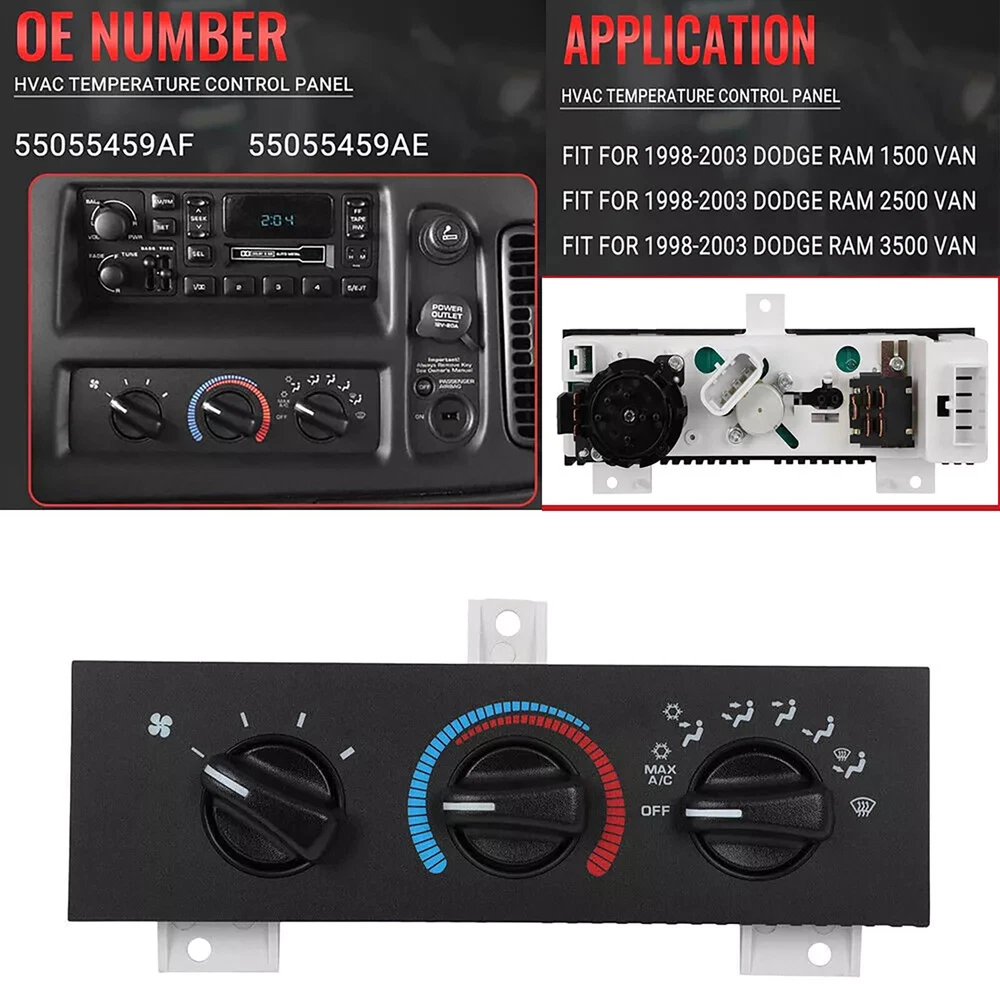 Product Description Heater Manual Climate Temp Control Panel For Dodge Stable Performance 1998-2003 1998-2003 For Dodge Ram Van A/C Heater Manual Climate Temp Control Panel 55055459AF Features: Made of top-grade durable material. Easy to use and to operate at affordable prices. High-Quality Material Improves Reliability And Safety. Long service life, high reliability, stable performance, and can better meet your needs. We have tested before shipping. Specification: Condition: 100% New Type: A/C Heater Manual Climate Temp Control Panel Fitment: For Dodge Ram Van 1998-2003 Part Number: 55055459AA, 55055459AB, 55055459AC, 55055459AD, 55055459AE, 55055459AF Please check the part number / model / make / year carefully before purchasing to insure fitment.If you have any questions or need fitment information for your vehicle, please contact with us. Package Included: 1pc AC Control Panel (as shown in the picture) Shipping Returns Contact Us Payment 1. Items sent from US warehouse. 2.Receiving time = Processing time + Shipping time 3. Processing Time: Around 1-2 business Days 4. Shipping Time: 3-5 business day it may have a little delay during some holiday (such as Christmas),any problem ,please feel free to contact 1. 30 days warranty from the purchased date. Please contact us via email before returning the defective item. 2.Our warranty does not extended to any product that are physically damaged or that are not under normal operating conditions as result of misuse or improper installation on the buyer/user's part. 3.Return items should include the original packaging and all accessories. buyers MUST contact us for the returning address. 4.In all cases, buyers pay shipping fees at their own cost to return products for exchange or refund. We will be responsible for the postage of replacements. Refund will be made upon receipt of the returned item. Pls contact us if you have any problems,we will try our best to solve for you We accept all verified payment from eBay. Shipping 1. Items sent from US warehouse. 2.Receiving time = Processing time + Shipping time 3. Processing Time: Around 1-2 business Days 4. Shipping Time: 3-5 business day it may have a little delay during some holiday (such as Christmas),any problem ,please feel free to contact Returns 1. 30 days warranty from the purchased date. Please contact us via email before returning the defective item. 2.Our warranty does not extended to any product that are physically damaged or that are not under normal operating conditions as result of misuse or improper installation on the buyer/user's part. 3.Return items should include the original packaging and all accessories. buyers MUST contact us for the returning address. 4.In all cases, buyers pay shipping fees at their own cost to return products for exchange or refund. We will be responsible for the postage of replacements. Refund will be made upon receipt of the returned item. Contact Us Pls contact us if you have any problems,we will try our best to solve for you Payment We accept all verified payment from eBay. You may also like New Fuel Petcock Valve Kit For Honda CRF50F/70F/80F/100F/150F/230F 2004-2007 18.69 USD Left Driver Side Door Molding Trim Parts For Cadillac Escalade For GMC 2015-2020 27.29 USD Auto Start Stop Eliminator Cable For Chevrolet Equinox Cruze Malibu 2016-2018 q 12.53 USD Stainless Steel Braided Flexible Hose Car Tire Valve Inflatable Copper Joint 3.84 USD 3.49 USD Gen2.1 CP4.2 For Ford 6.7L 2011-2022 Powerstroke Disaster Prevention Bypass Kit 142.66 USD 3.49 USD USB Wireless Adapter Dongle For iOS 10+ Car Auto CarPlay Navigation Player b 58.29 USD 3.49 USD powered by