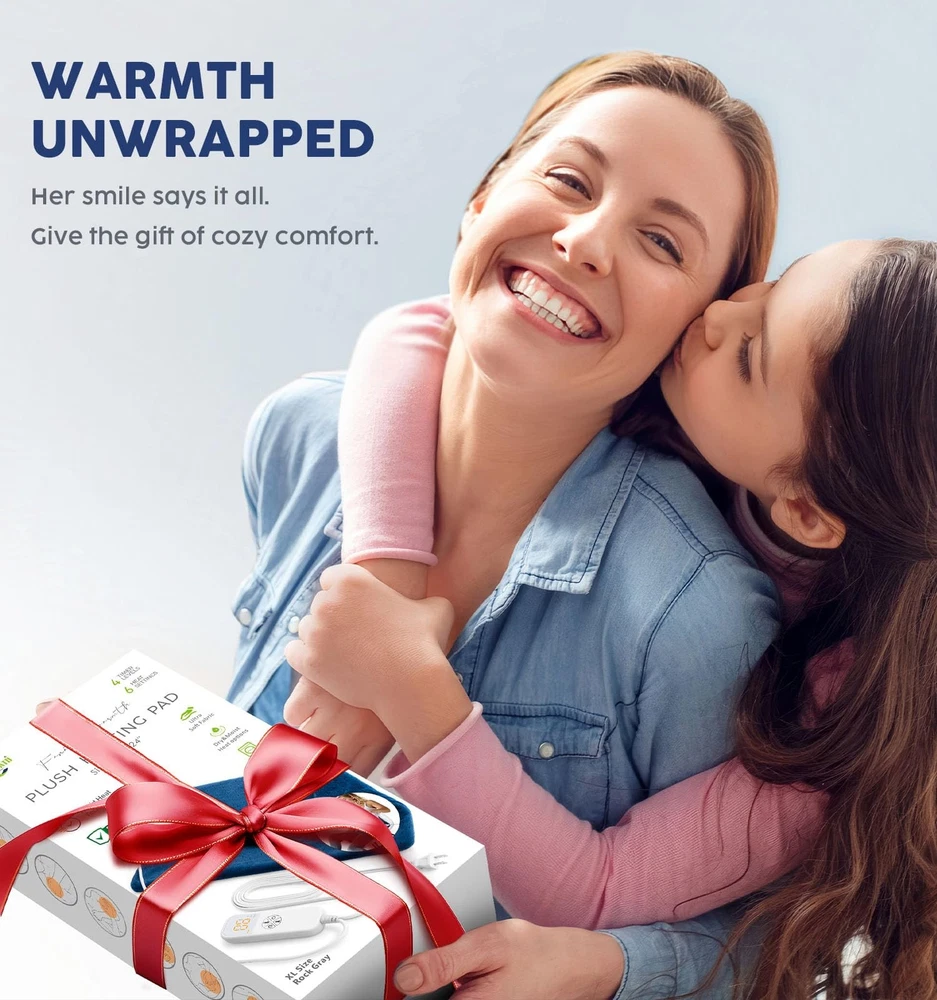 Introducing the Heating Pad, your ultimate solution for pain relief and the perfect gift for any occasion. Whether you're looking for gifts for women, gifts for men, gifts for mom, gifts for dad, or searching for the ideal Christmas, Father's Day, or Mother's Day, Birthday gift, this heating pad offers powerful heat therapy for back pain and period cramps. Its deep-reaching heat effectively targets muscle tension, providing quick relief from daily aches and pains. Measuring a generous 24”x 20”, this heating pad ensures king-size coverage and flexibility. Its flexible design contours to your body's curves, offering ultimate comfort. Perfect for wrapping around legs, spreading across the back, or draping over the shoulders, it delivers soothing warmth wherever it's needed. With 6 customizable heat settings, users can find their perfect level of comfort. Safety is paramount, with an automatic shut-off feature that turns off the pad after 2 consecutive hours of use to prevent overheating. Whether you prefer dry or moist heat therapy, this versatile heating pad caters to your needs, offering a tailored solution for individual discomforts. Maintenance is a breeze with its machine washable fabric, ensuring easy cleaning and upkeep. Plus, with a 2-year and hassle-free returns, you can purchase with confidence, knowing you're investing in quality and assurance. Experience natural pain relief and comfort with the Heating Pad. Ultimate Pain Relief & Perfect Gift: The Heating Pad offers powerful heat therapy for back pain and period cramps, making it an ideal gift for women, men, mom, dad, and loved ones. It effectively targets deep muscle groups to soothe and comfort, providing quick relief from daily aches and pains King Size Coverage & Flexibility: This 24”x20” heating pad offers generous coverage, ensuring ultimate comfort. Its flexible design contours to the body's curves, perfect for legs, back, or shoulders. Ideal for Father's Day, Mother's Day, birthdays, or Christmas Gifts, it's a versatile and comforting gift for any occasion Customizable Heat Settings & Safety Features: The Electric Heating Pad offers 6 preset heat levels to choose from, ensuring personalized comfort for users. With its built-in automatic shut-off feature, it provides peace of mind, making it an ideal gift for dads, moms, or retirees. Perfect for soothing aches and pains, it's a thoughtful and practical gift for any occasion Dry & Moist Heat Therapy Options: This versatile heating pad can be used as a dry heating pad or a moist heating pad. Simply spray the pad with water for deeper heat penetration and more intense pain relief. Its dual functionality caters to various discomforts, offering a tailored solution for individual needs Easy Maintenance & Assurance: The Heating Pad is designed for convenience, featuring machine washable fabric for easy cleaning and maintenance. Additionally, it comes with a 2-year and hassle-free returns, providing reassurance and peace of mind for users. Invest in natural pain relief and quality assurance with the Heating Pad for back pain and cramps